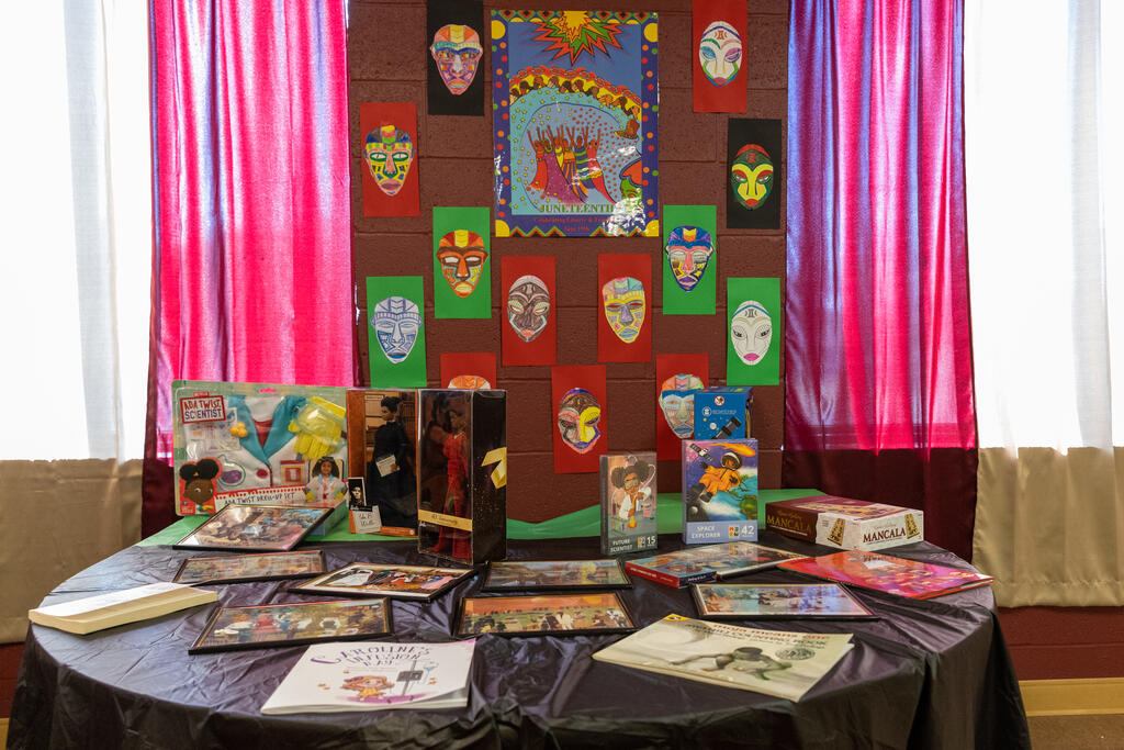The displays are wide-ranging, touching on everything from traditional African folklore and history to the impact of Black Americans in science, business, sports, entertainment, and beyond. Students at Barrett spent the last few months making quilts with messages on them, and each quilt was on display alongside one that was donated to the event in 2024.