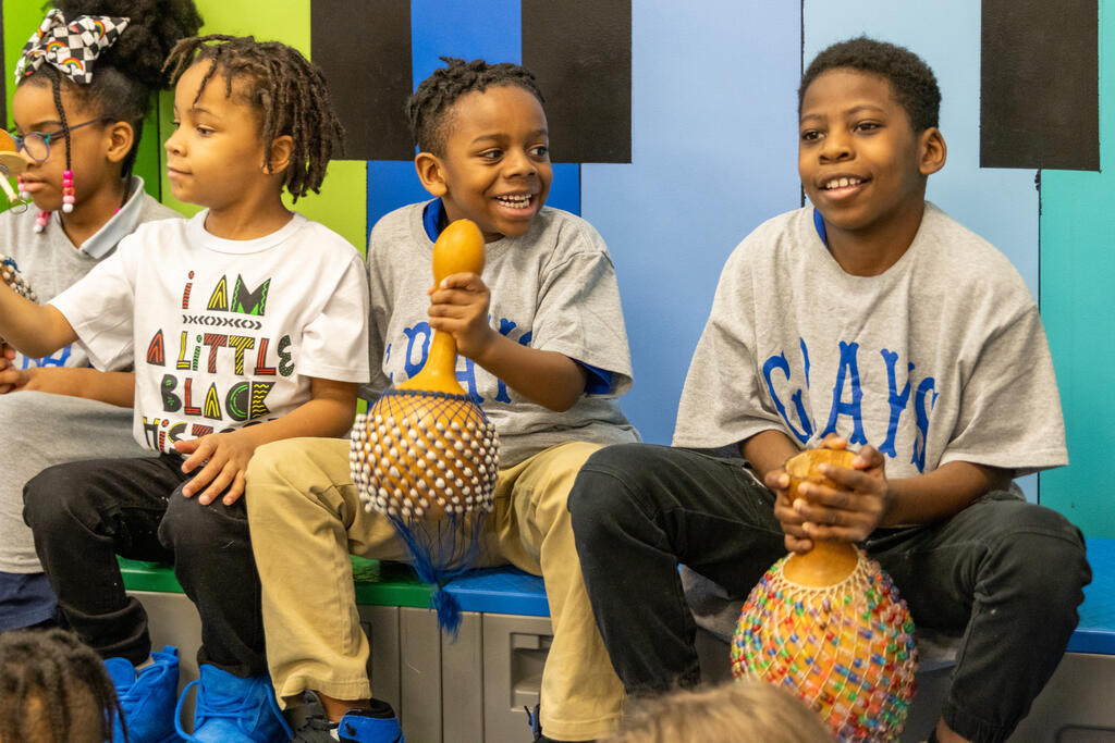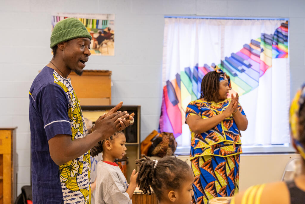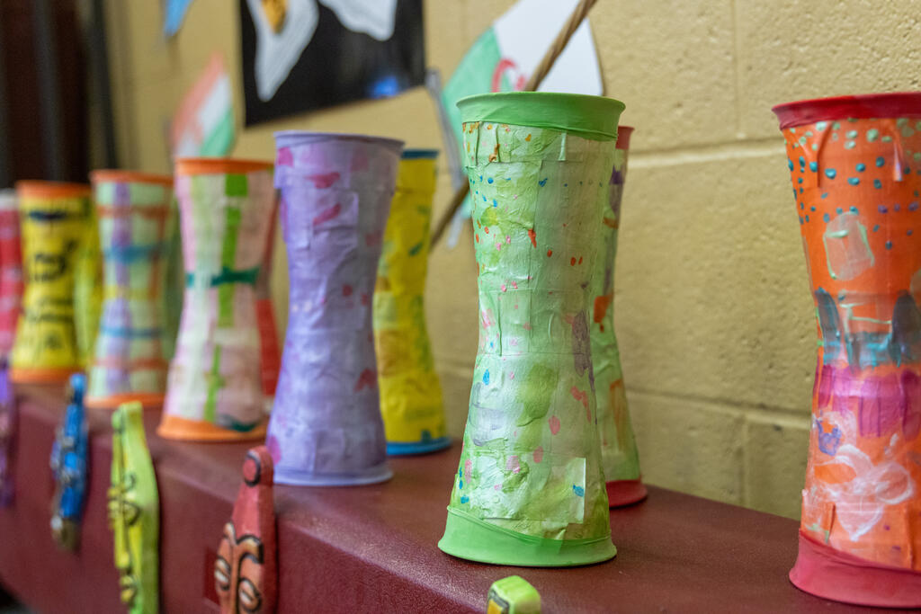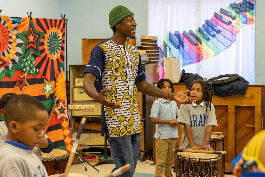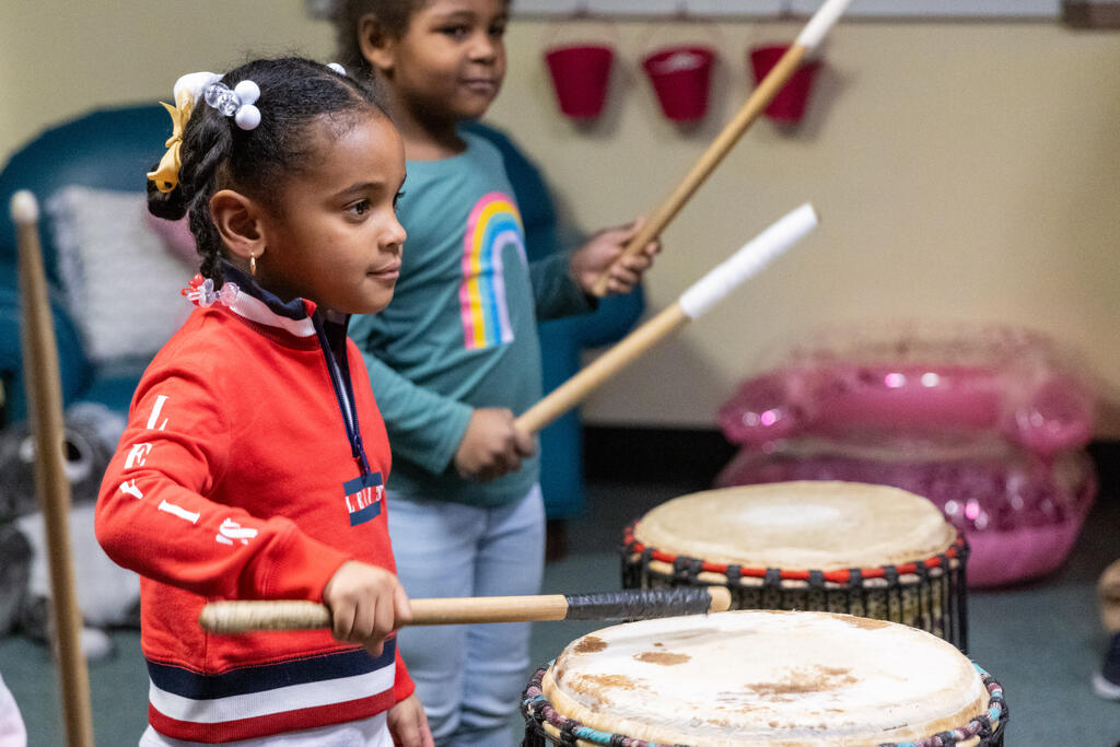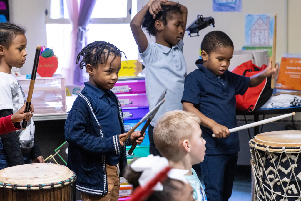 Down the hall, another group of students listed to traditional stories in specific dialects. Two floors above, they drummed away on African instruments.