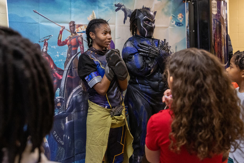 At various points throughout the exhibits were stations where Steel Valley High School students and alumni, as well as special guests, portrayed notable historical figures and pop culture icons. This year's "cast" included Pe'Shince McCarrell as Black Panther and Shatyra Parker as Shuri from the Marvel franchise, Wendeoll Slade as musician Juice Wrld, Tobias McKeever as President Barack Obama, Calil Moon as Malcolm X, Vinton Keller as Martin Luther King, Jr., and local poet/artist Bonita Penn as poet Phillis Wheatley.