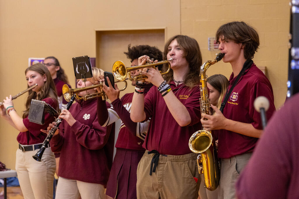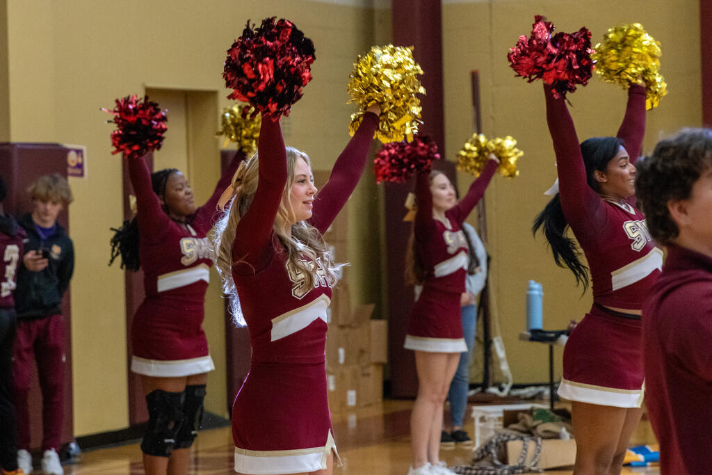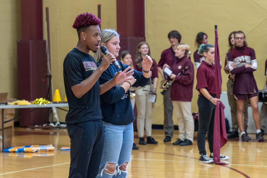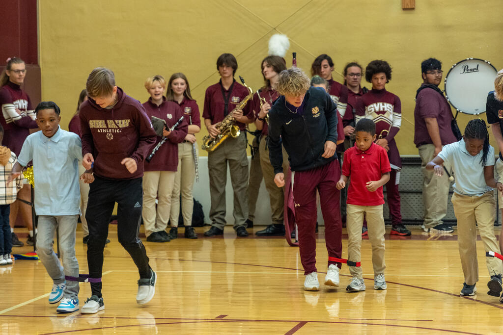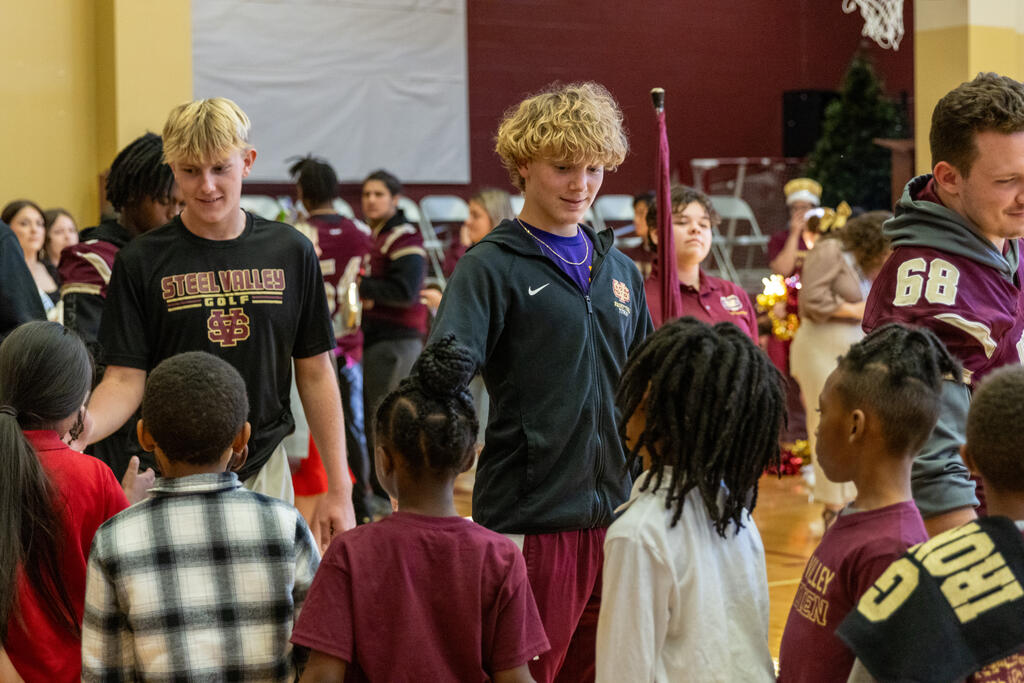 Barrett students listened to the high school students talk about the importance of leadership, kindness, and teamwork, met this year's homecoming court, chanted with the cheerleaders, and listened to the Steel Valley Marching Band.