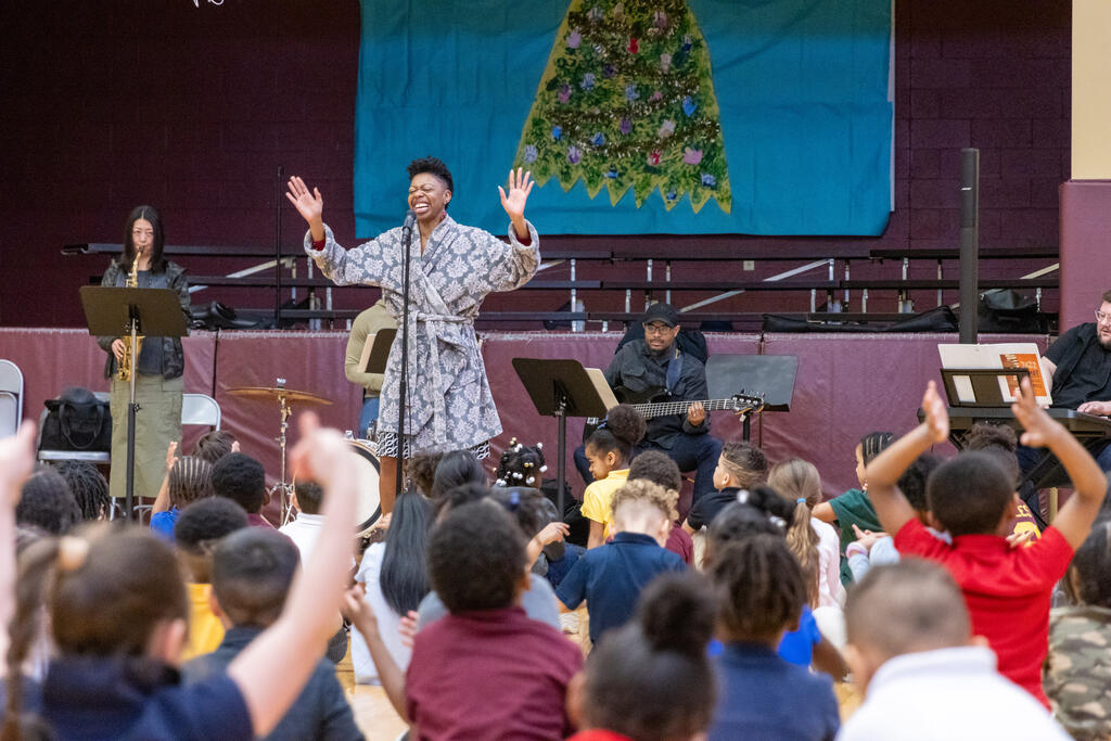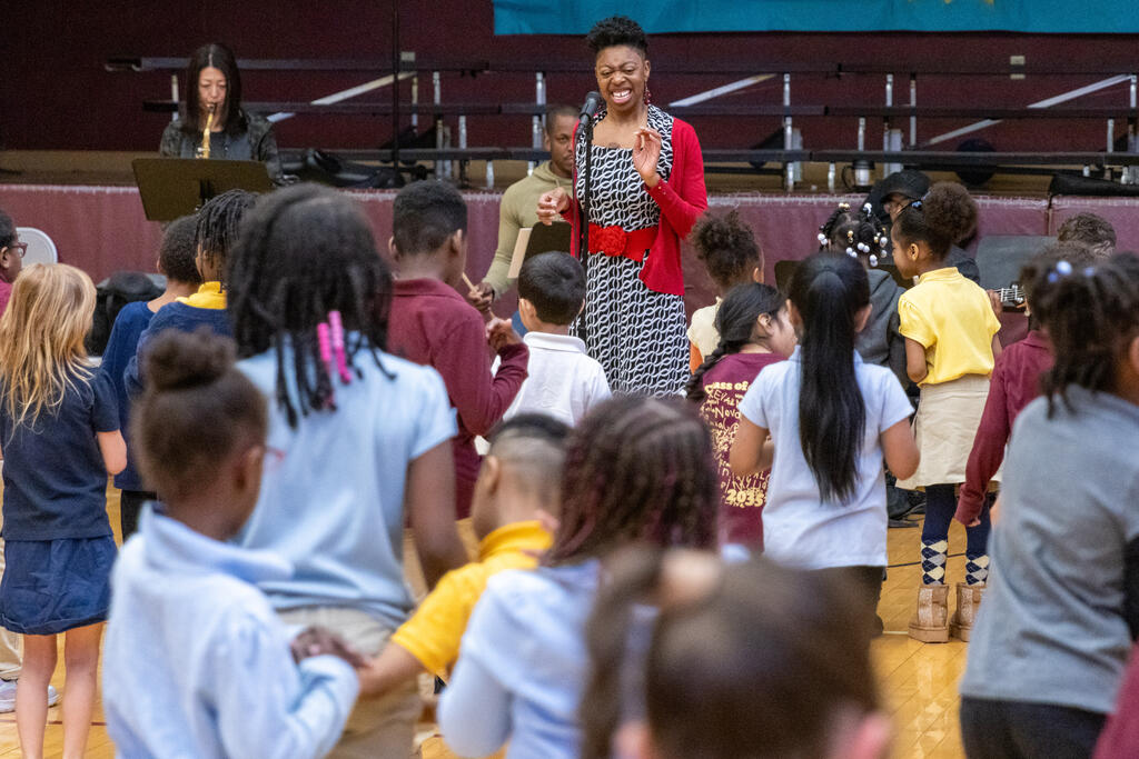The musicians taught the students about some key elements of jazz and music as a whole. They learned about melody and how to make a song stick in your head. They played with dynamics and how parts of a song can be really loud or soft and quiet. They played around with tempo, or how fast or slow a song can be. And they learned about one of the hallmarks of jazz music - improvisation!