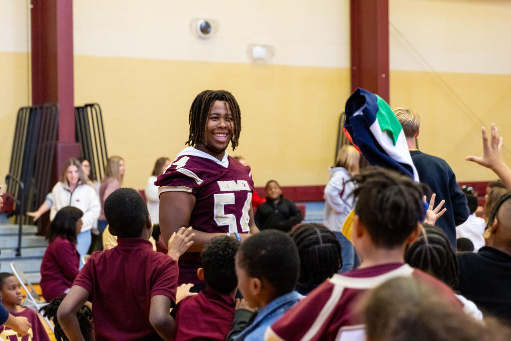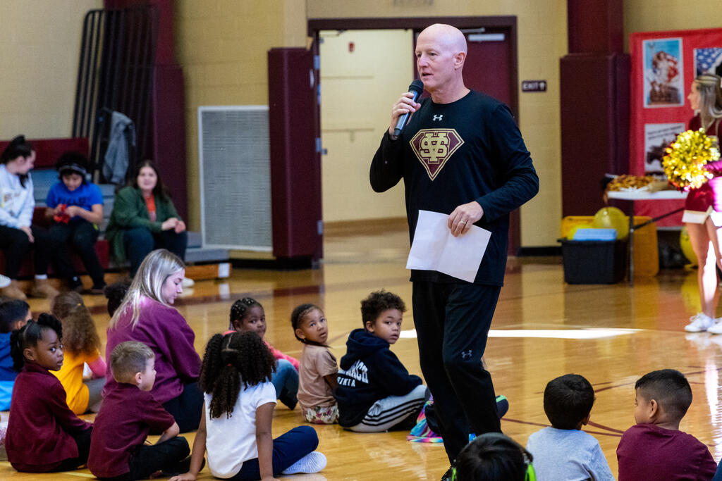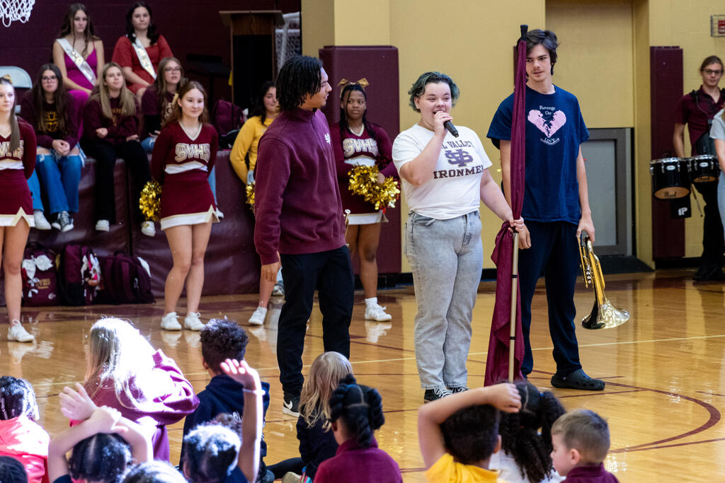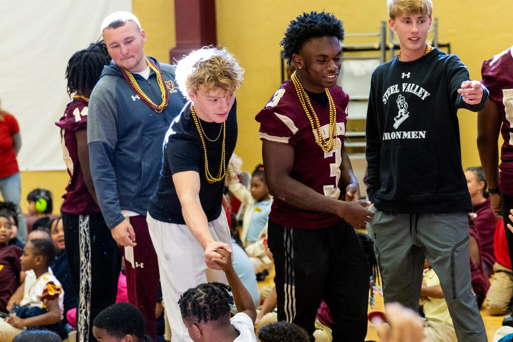The high school student-athletes talked about the importance of leadership, teamwork, and hard work. Barrett students met some of the captains of the Steel Valley fall sports teams, cheerleaders, and marching band, as well as this year's homecoming court.