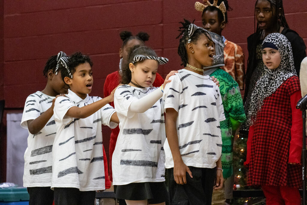 Fourth graders came on stage to find out what happens "If It Doesn't Snow on Christmas." They also performed "Santa's Using Zebras Now" and "Hallelujah."