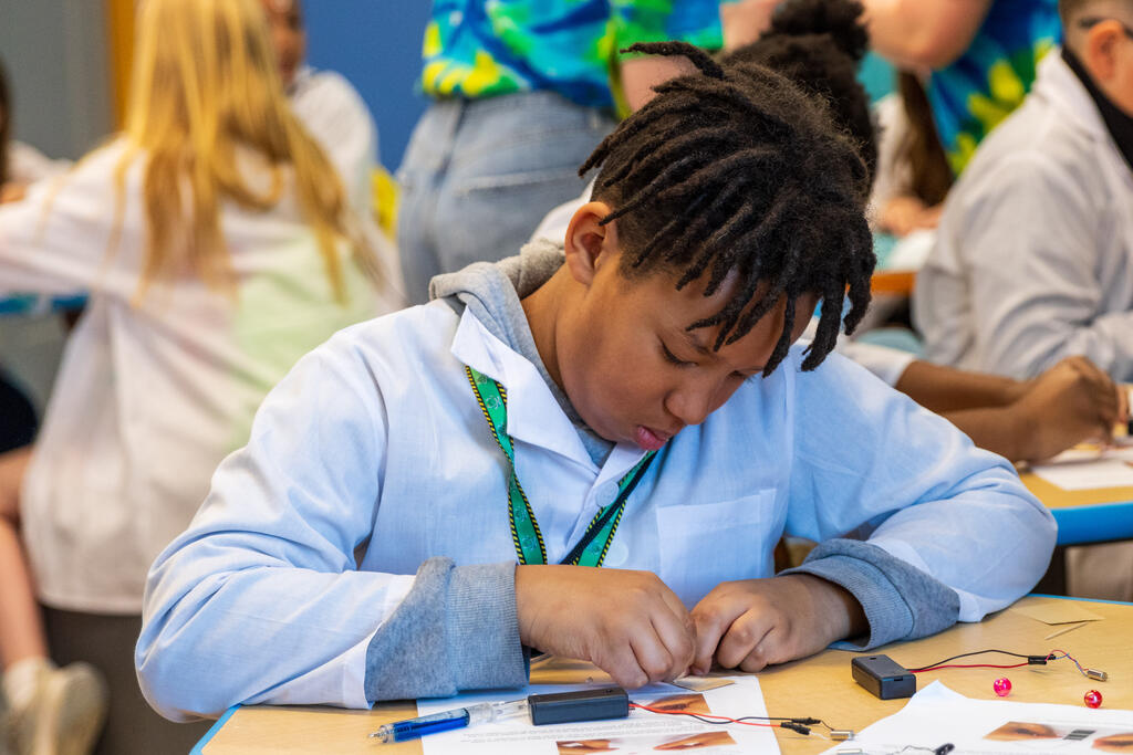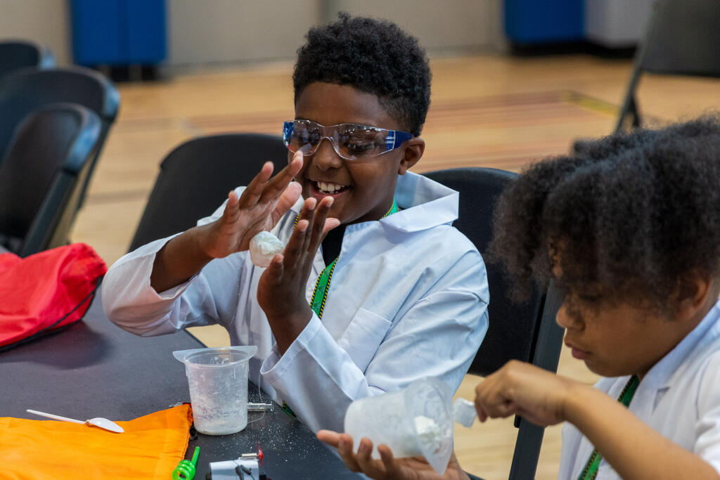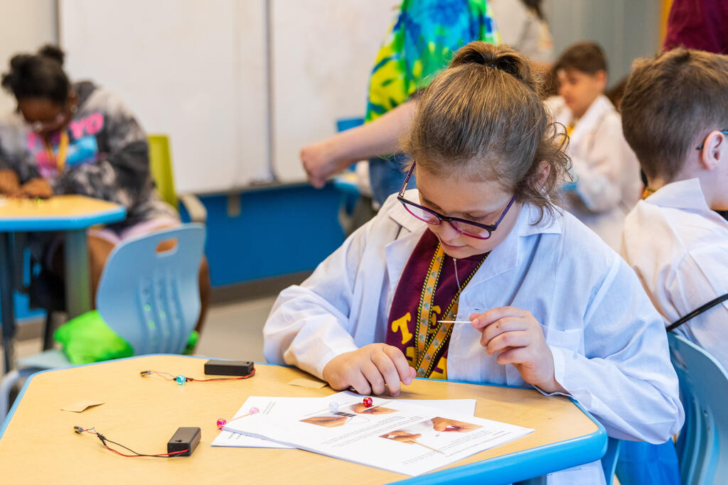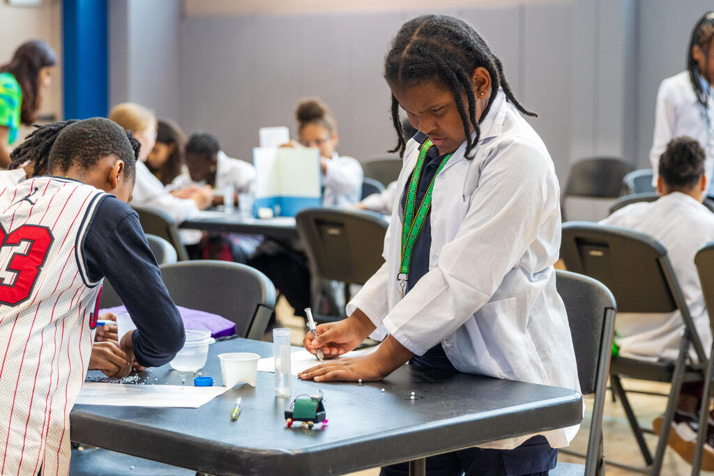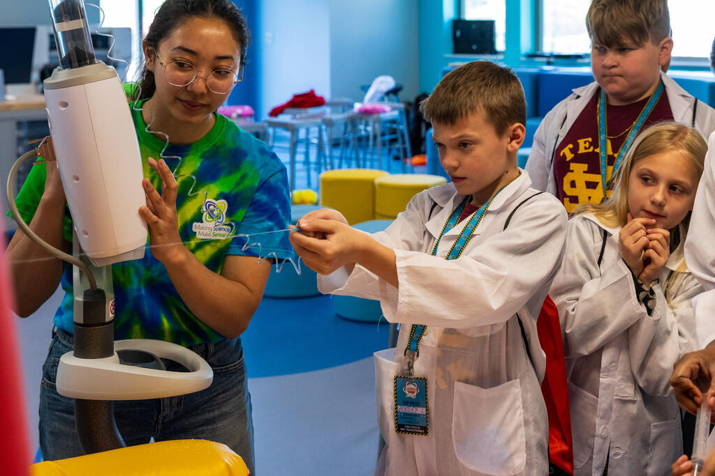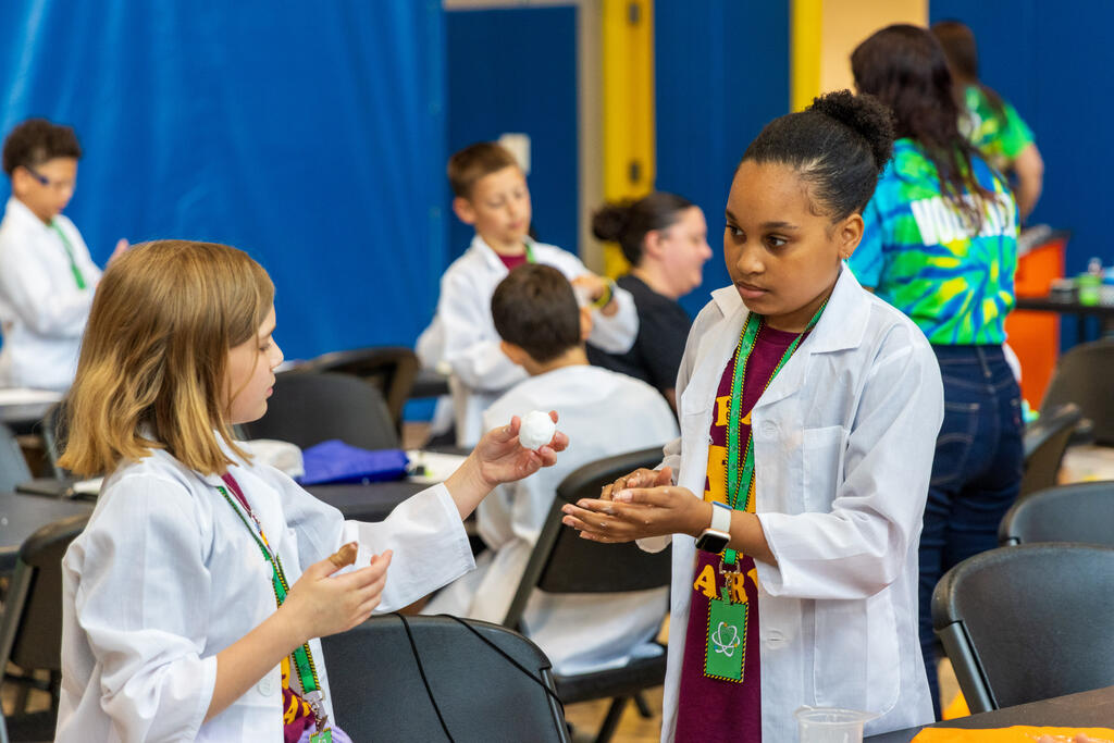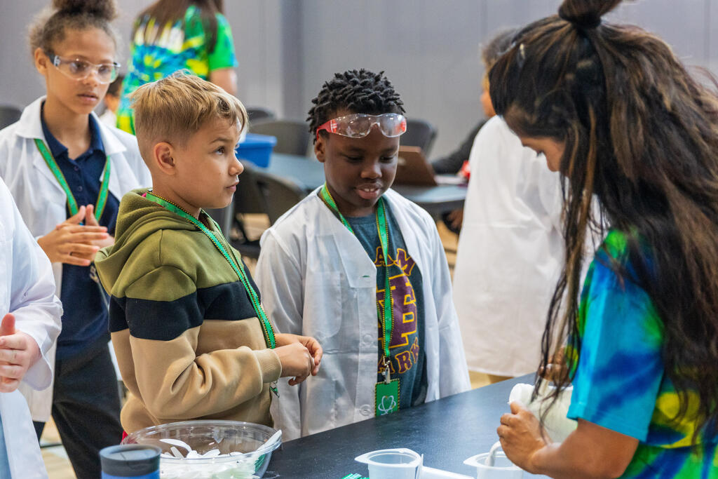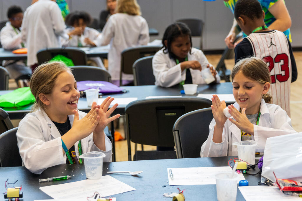 Fourth graders from Barrett Elementary and Park Elementary spent the day together exploring science at the Best of the Batch Foundation. The program was in partnership with volunteers from Bayer, who guided the students through a series of experiments and activities to help them learn more about biology, robotics, engineering, and more.