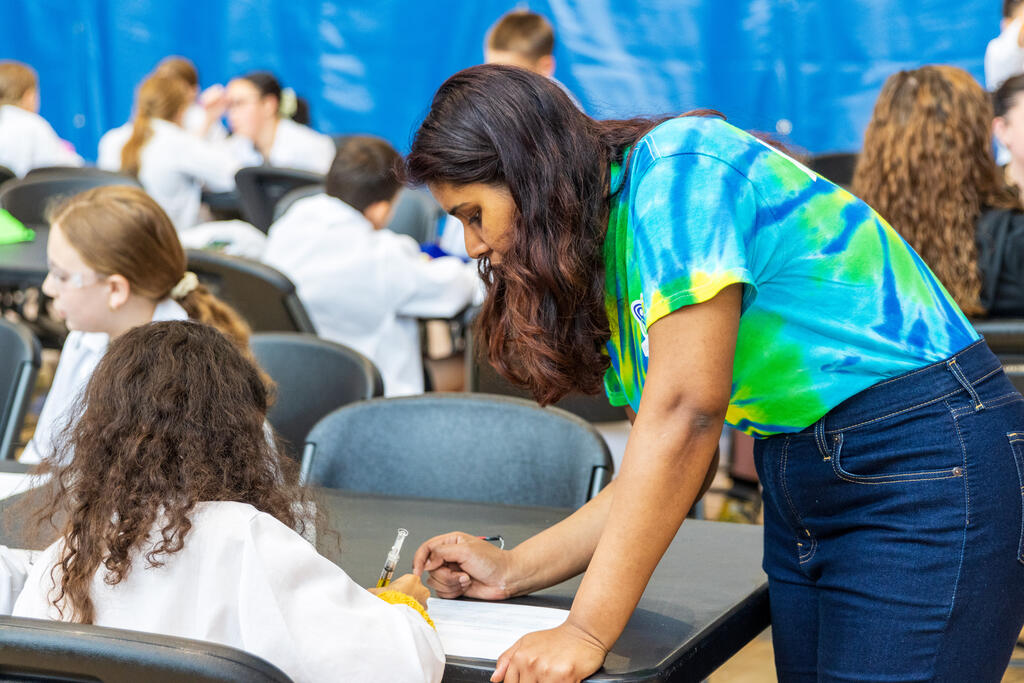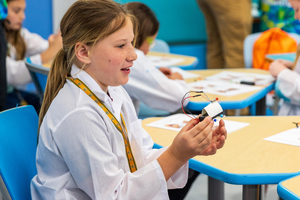 Students also built tiny robots - complete with beads as wheels and a small but surprisingly powerful propeller - and learned about the viscosity of different liquids, the purpose of dye injectors in medicine and how much more control there is with them compared to a syringe, and much more. Bayer and The Best of the Batch Foundation also treated the students to lunch.