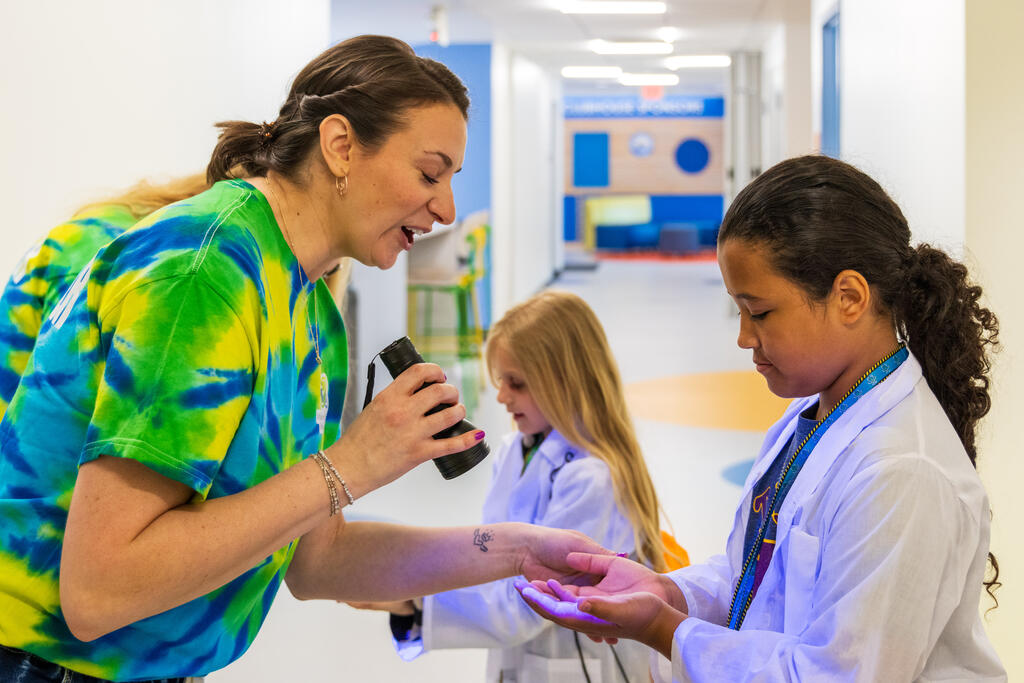 One activity showed just how important it was for students to wash their hands after using the bathroom. Students put a special lotion on their hands and then went through their normal hand-washing routine, only to be surprised when volunteers shined a black light on their hands to show just how much they missed! The activity was a reminder of how easy it is for germs to spread without proper hygiene.