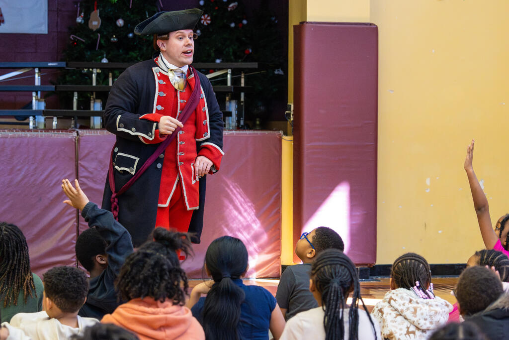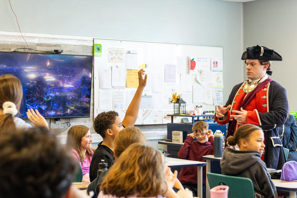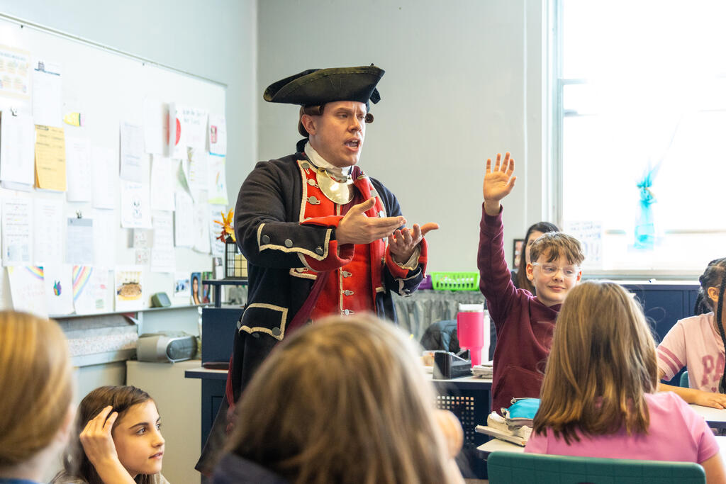 The students also learned about Washington's education and interests, including his fondness for mathematics and work as a surveyor. After listening to George Washington share some stories and wisdom, the students had an opportunity to ask the future president some questions.