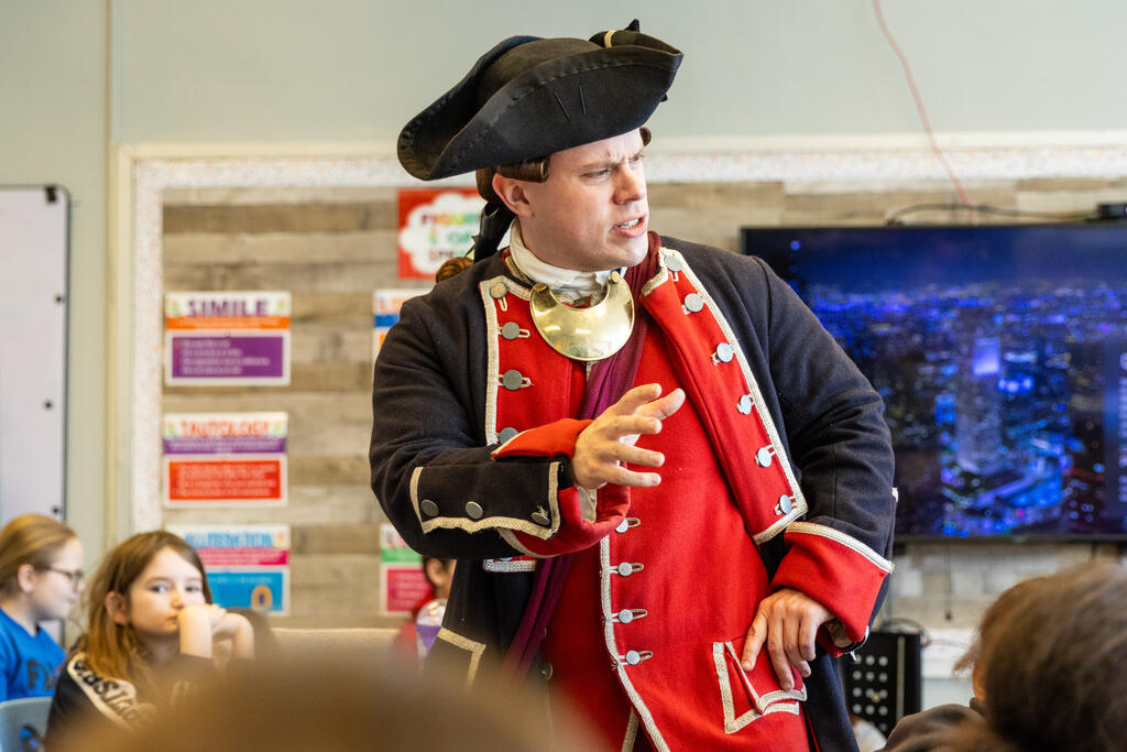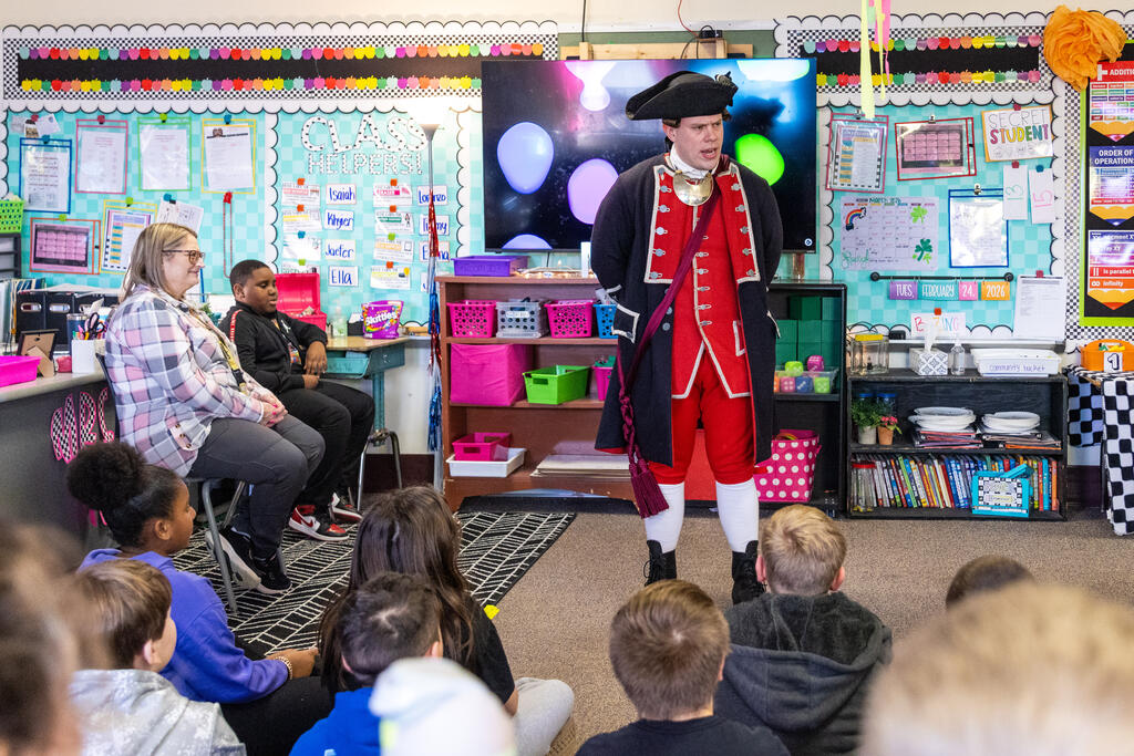 History came to life inside Steel Valley's two elementary schools on February 25 and February 26, as Colonel George Washington made the long trip from Mount Vernon to speak with students about his previous experiences in Western Pennsylvania.
