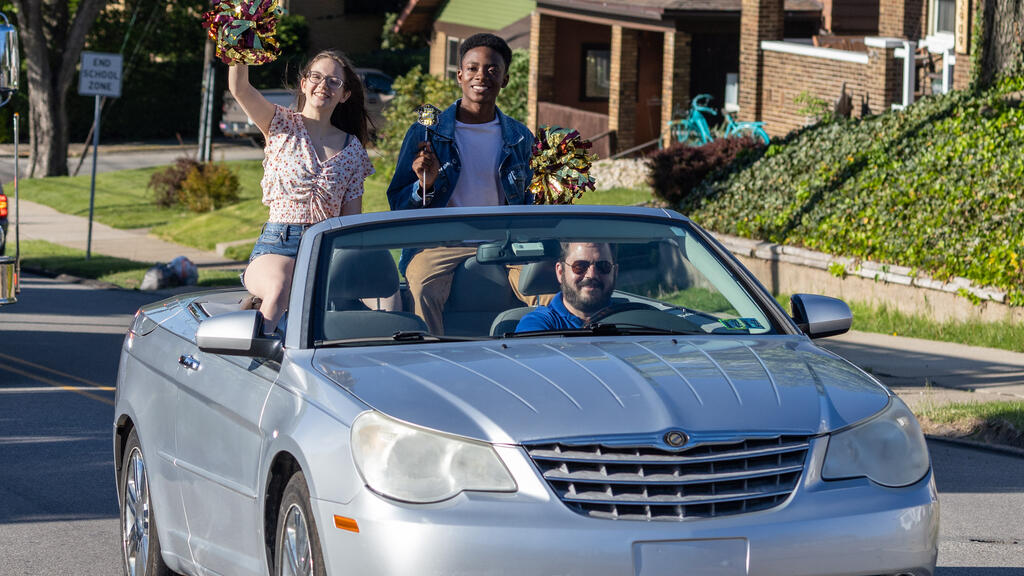 The route began at the high school, wound its way up Main Street past Park Elementary, ducked down West Run Road eventually to West Homestead, rolled through 8th Avenue into Homestead, then back up West Street and Main Street to the high school. Several students earned rewards for the decorations on their cars.