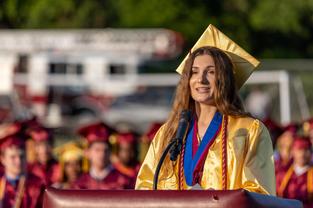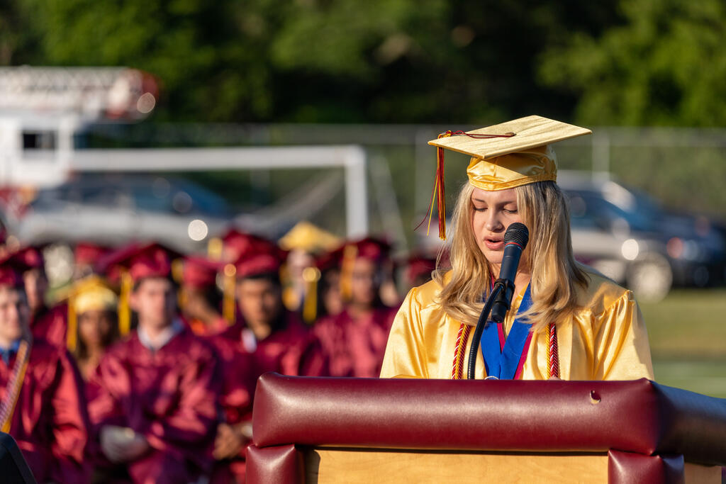 Salutatorian Chelsea Bulger reminded her classmates to remember that life is unpredictable and that things don't always go as planned. However, they should look back at their journey through high school with a sense of accomplishment.