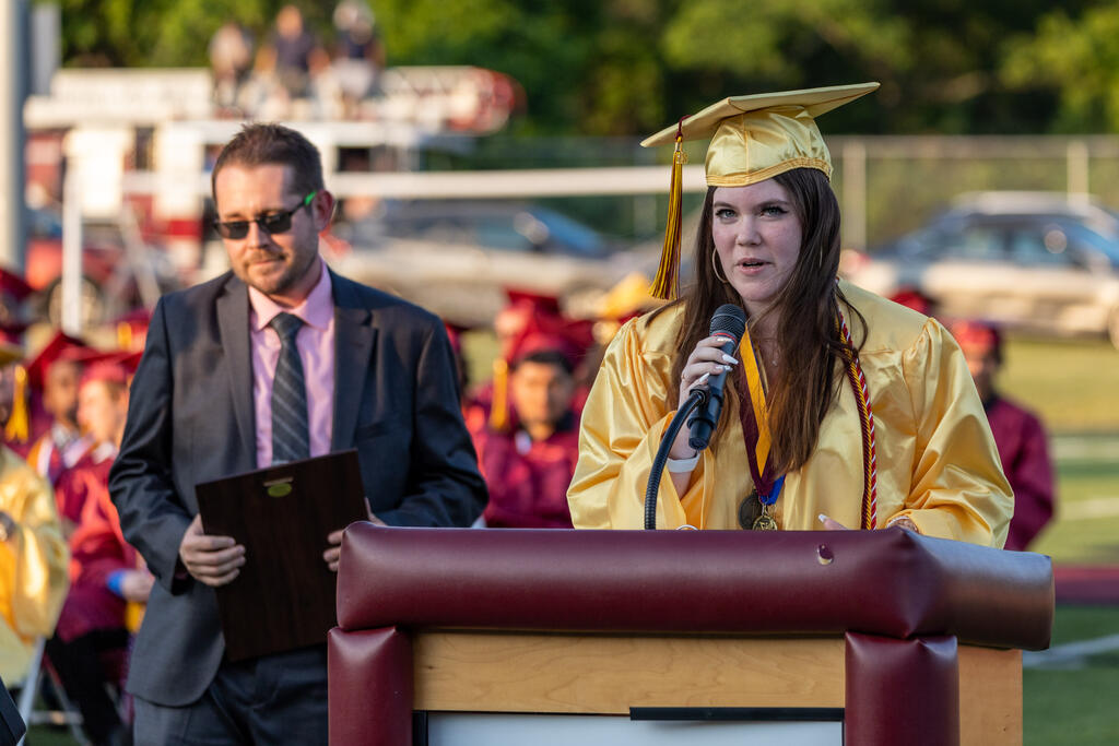 Connor Brady and Jasmin Harris also spoke as this year's outstanding career and technical education students. Brady thanked teacher Mrs. Michelle Madigan for her guidance toward the Steel Center for Career and Technical Education and helping him pursue a future in working with animals.
