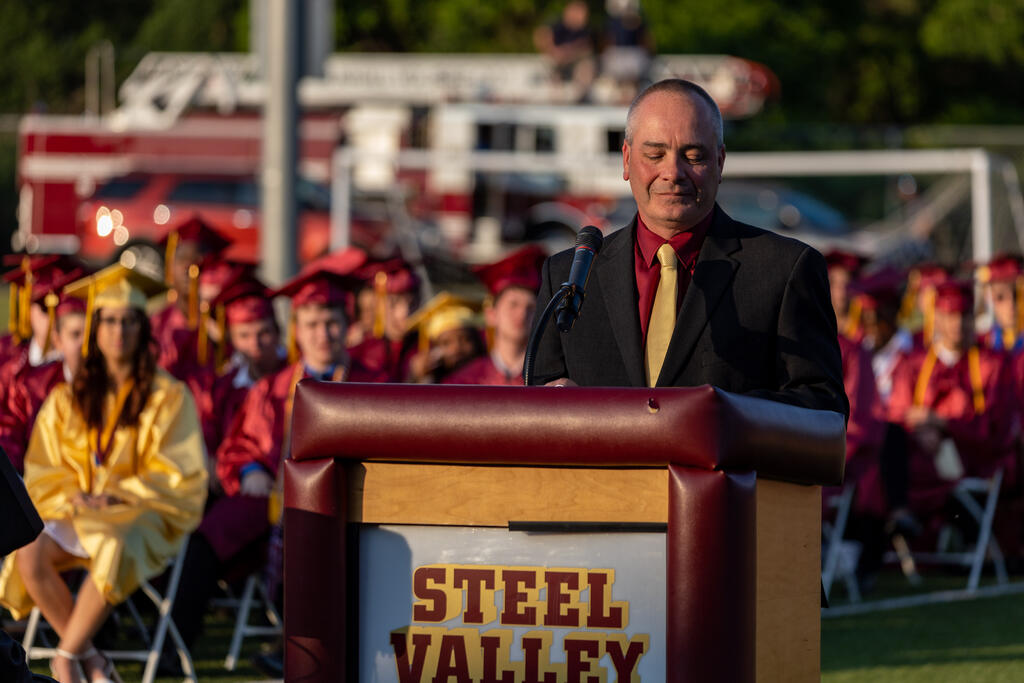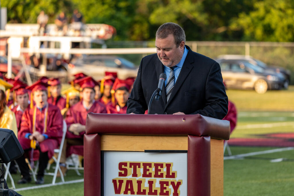 Jim Bulger, President of the Steel Valley Board of School Directors, relayed advice he received from mentor and former NFL official Ed Camp. When asked what his mark of success was, Camp replied that it was when he knew people liked working with him. Mr. Bulger encouraged the Class of 2023 to strive for the same goal.