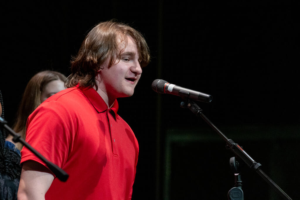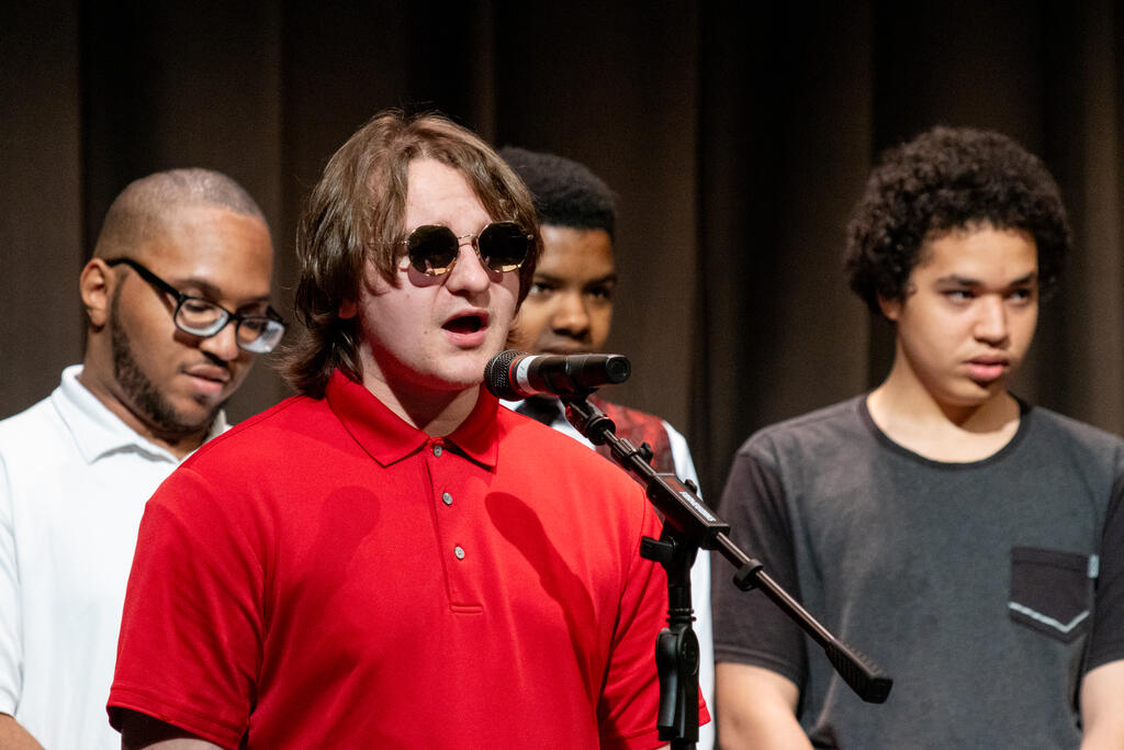 The solo performances continued with senior Wendoll Slade's performance of the Plain White T's "Hey There Delilah" and with senior Pe'Shince McCarrell's rendition of Ricky Montgomery's "Mr. Loverman." Senior Cianna Shankle closed out the solo performances with her performance of Green Day's hit "Wake Me Up When September Ends."