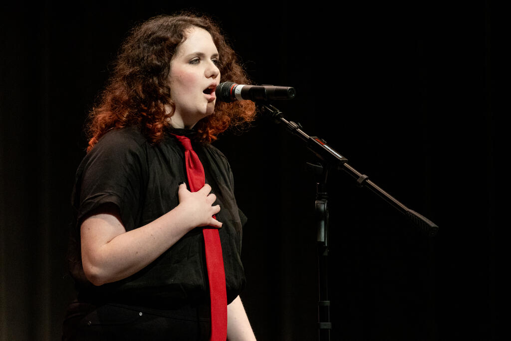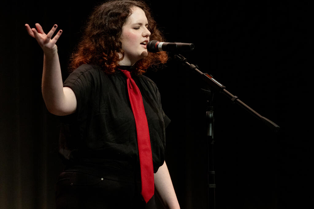 Senior Alexis Palucis added some musical theater flavor with her performance of Katherine Lynn-Rose's "Top of My School." The men in the concert choir took the stage for a performance of John Lennon's "Imagine," which included a solo from Ryan Packer.
