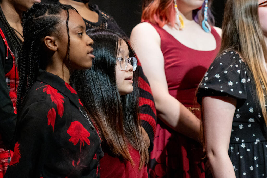 The women in the concert choir took the stage for a special arrangement of the George Harrison-penned Beatles hit "Here Comes the Sun," which included a solo by Rebekah Kleiber. The full choir then closed the show with a medley from Walt Disney's classic Aladdin."