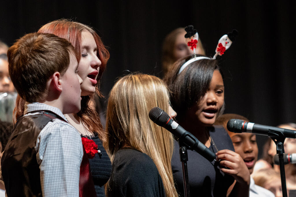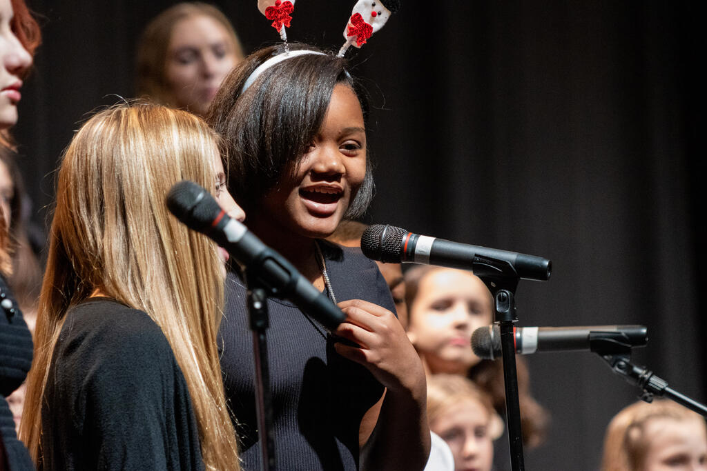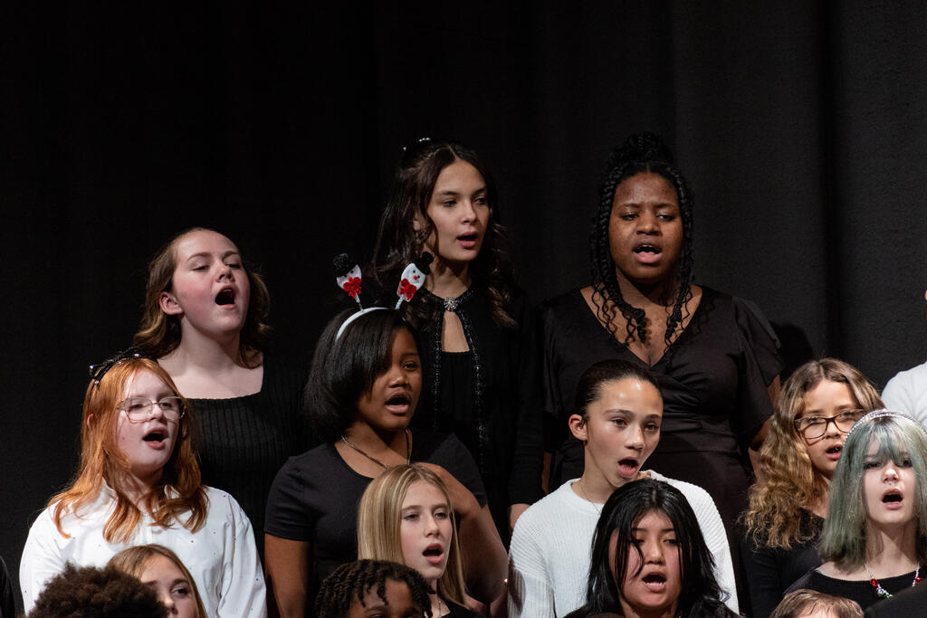 The Steel Valley Middle School Forge Voices took the stage next to perform four songs - "It's Beginning to Look Like Christmas," "Three Little Birds," "Stand Up," and the always popular "Jingle Bell Rock."