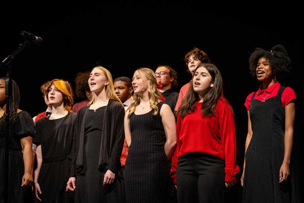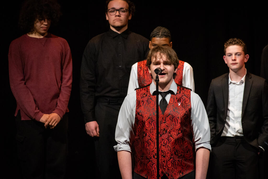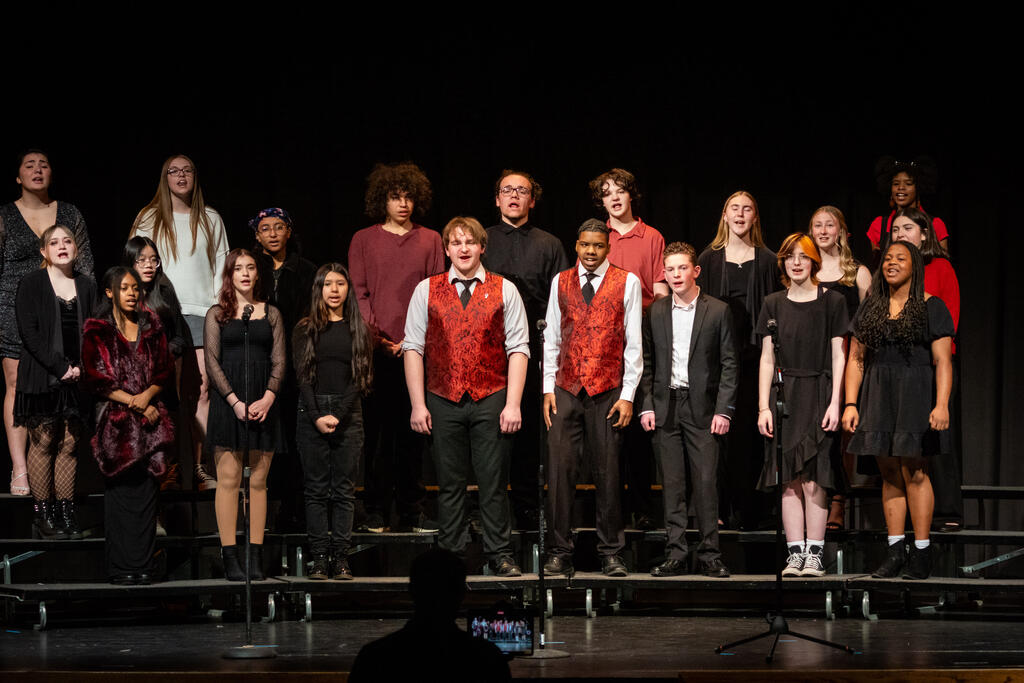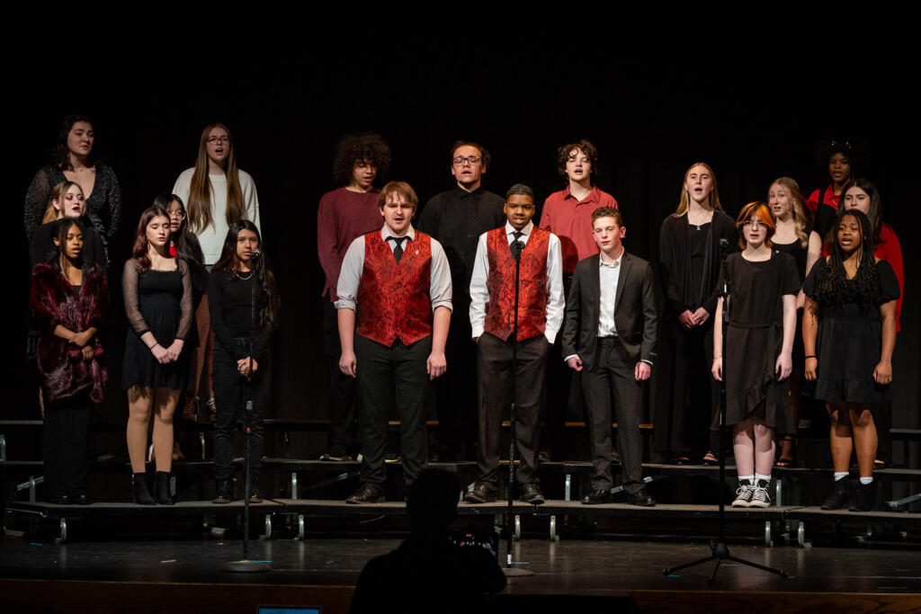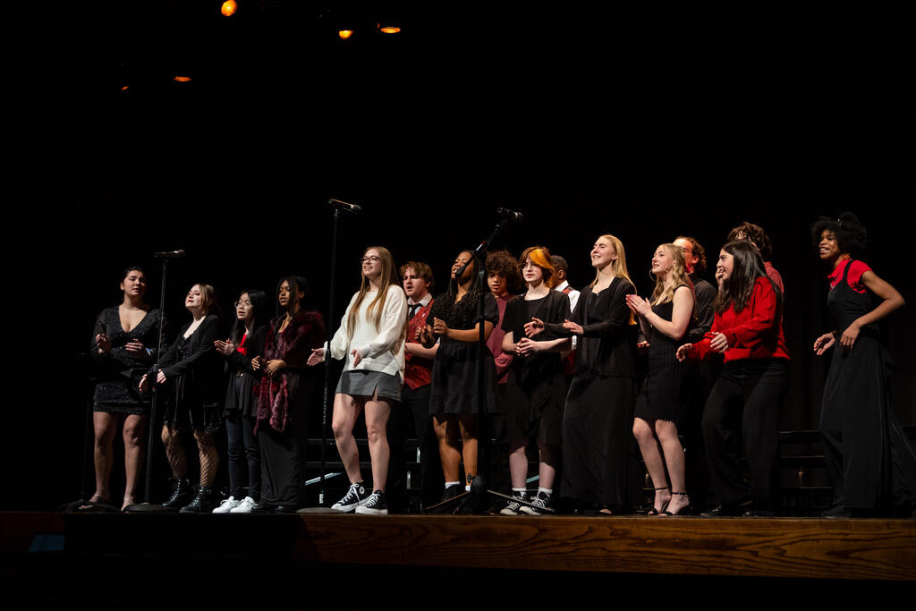 Kleiber teamed up with Shaterra Meadows to perform a rendition of the Motown classic "Ain't No Mountain High Enough" before senior Layla Rager took the stage to perform a version of Rihanna's hit "Stay." The full choir returned to get the audience to sing and clap along to Bill Withers' "Lovely Day," which was followed by Matthew Fulmore's performance of Steve Lacy's viral hit "Dark Red."