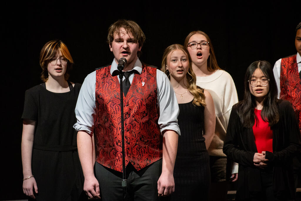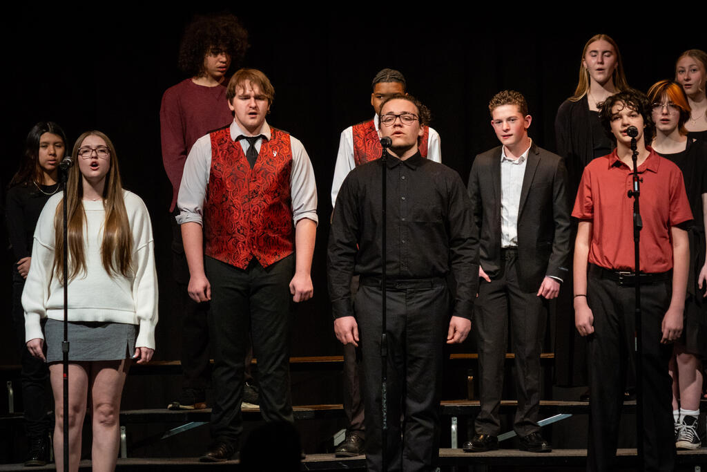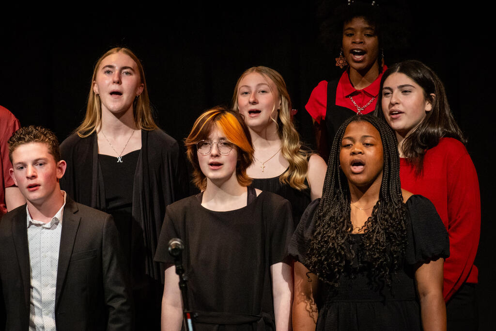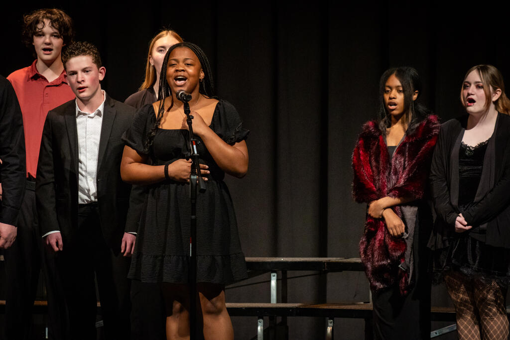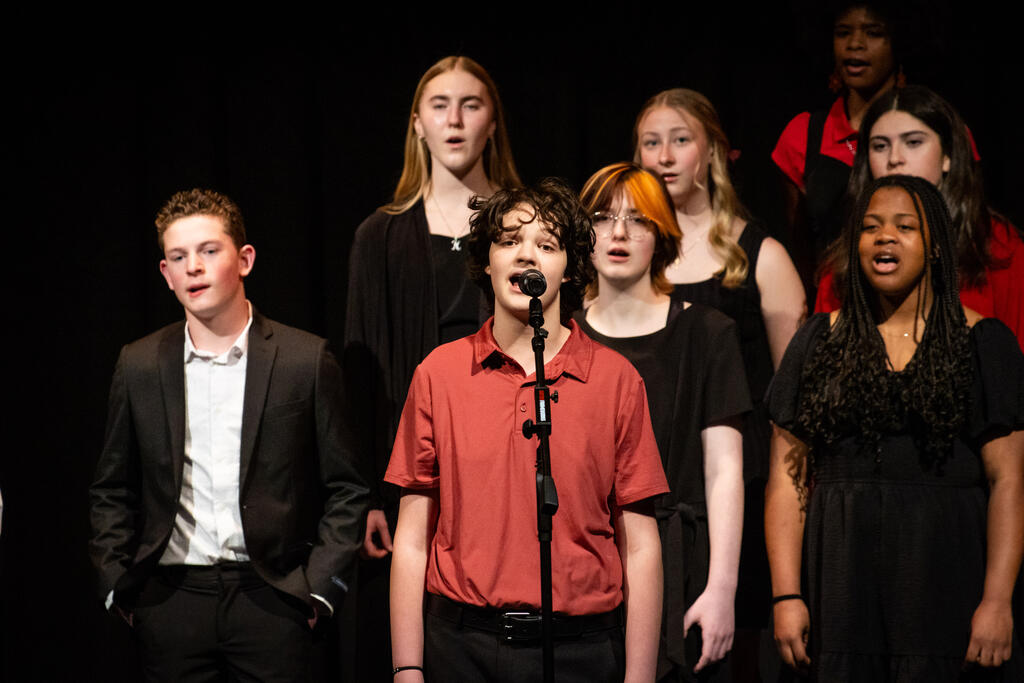 Kleiber teamed up with Shaterra Meadows to perform a rendition of the Motown classic "Ain't No Mountain High Enough" before senior Layla Rager took the stage to perform a version of Rihanna's hit "Stay." The full choir returned to get the audience to sing and clap along to Bill Withers' "Lovely Day," which was followed by Matthew Fulmore's performance of Steve Lacy's viral hit "Dark Red."