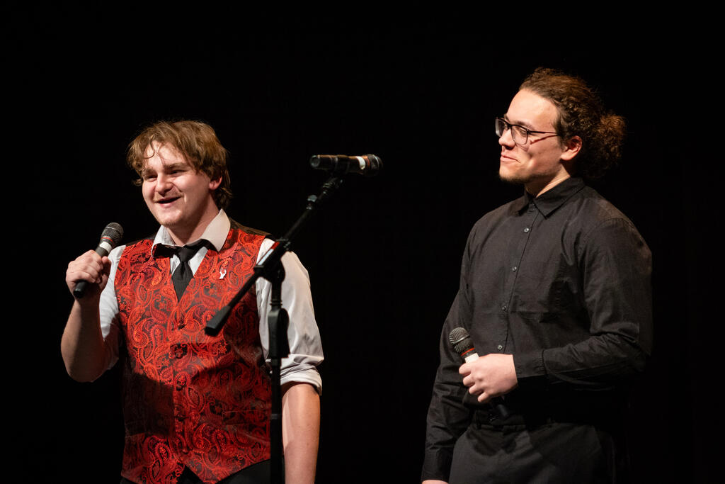Senior Will Coyne performed a solo rendition of The Avett Brothers' "Murder in the City." He was then joined by fellow senior Ryan Packer for a spin on Withers' classic "Just the Two of Us," complete with a short dance number.
