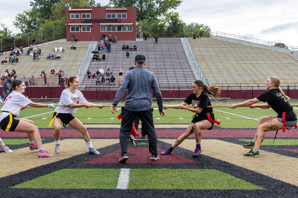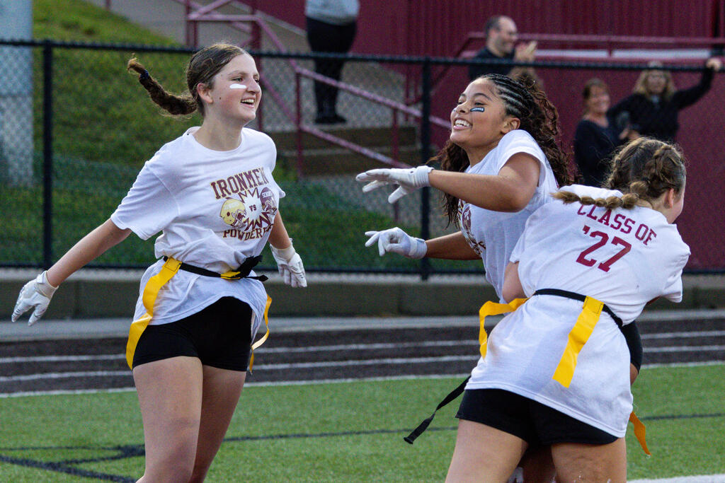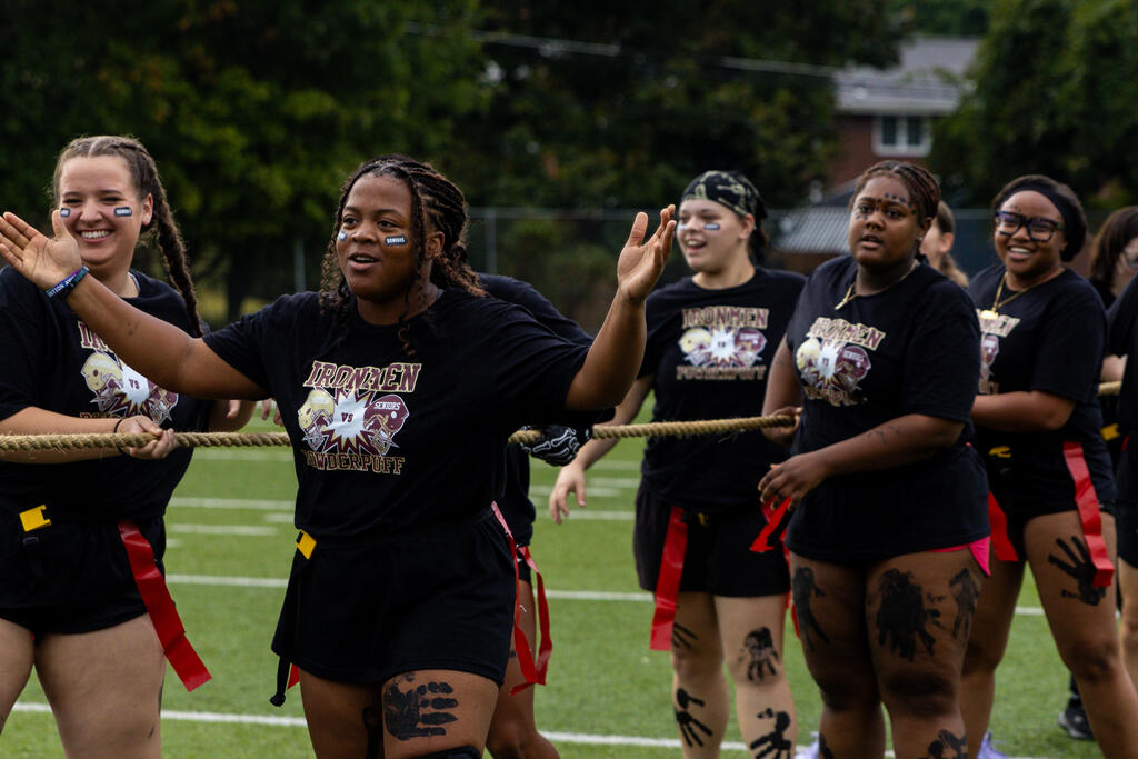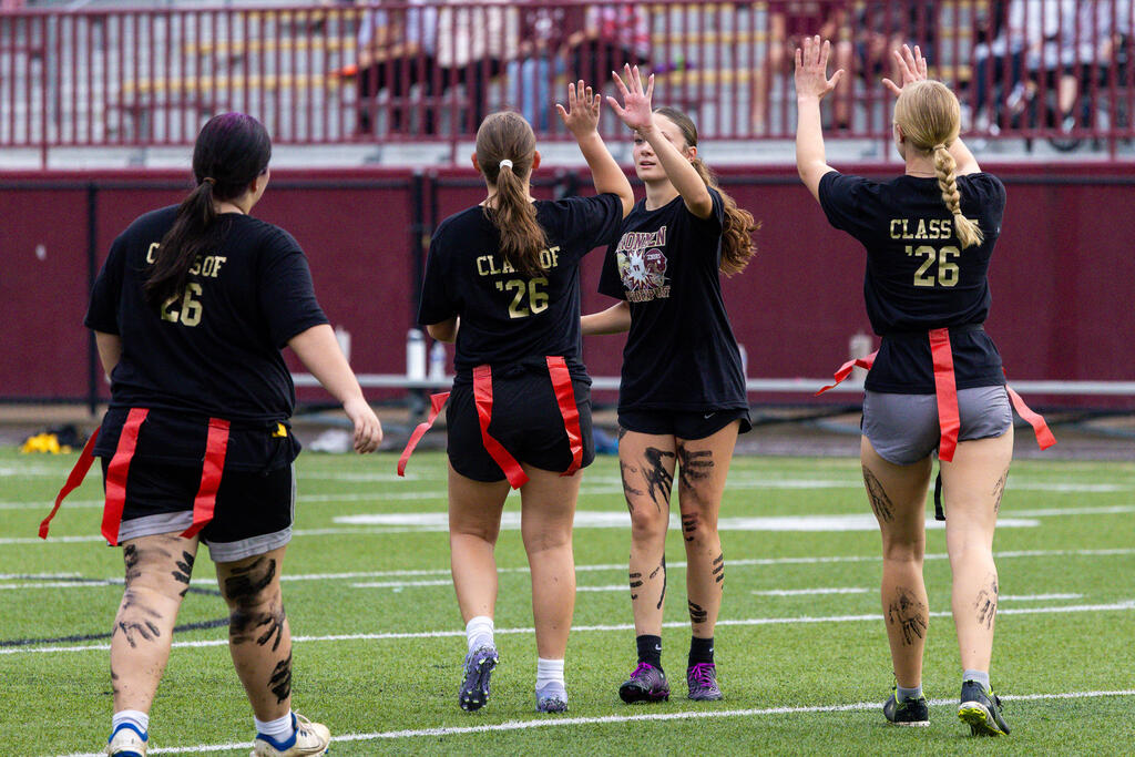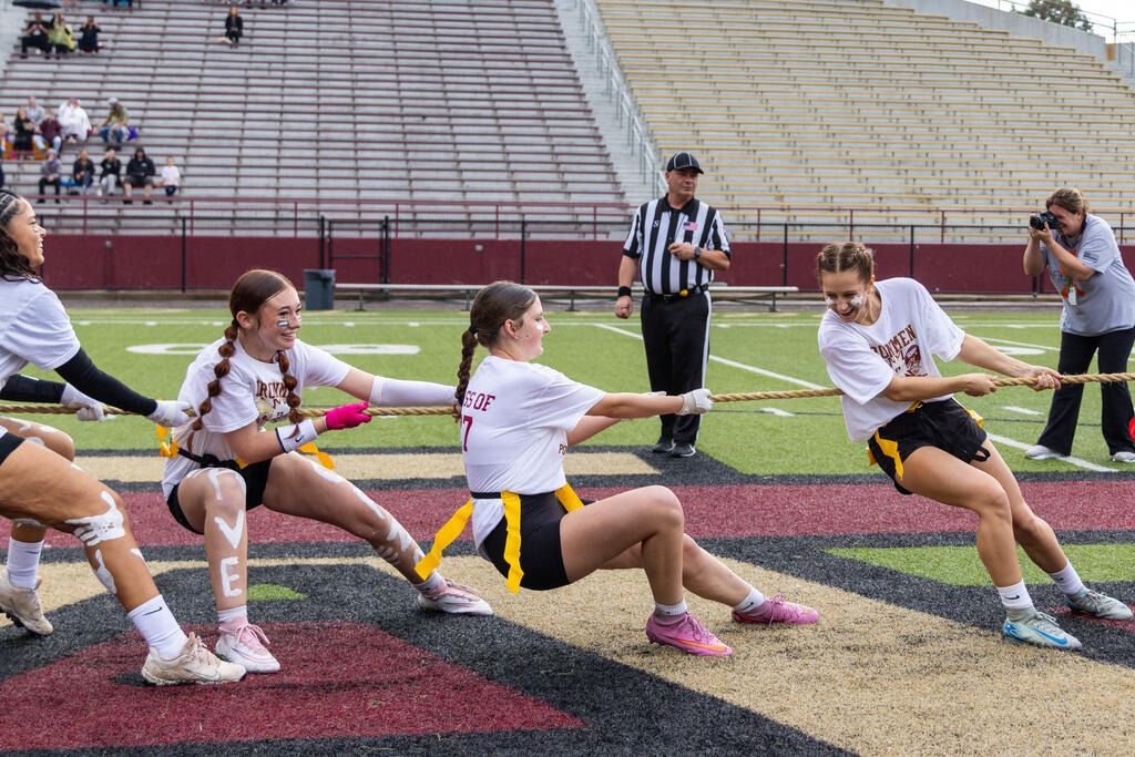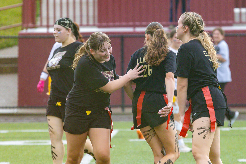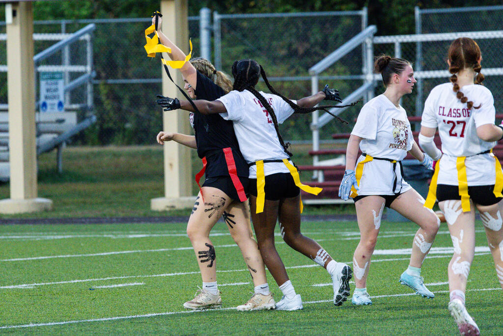 The seniors were determined from the start, winning the annual tug-of-war battle with two consecutive victories in the best of three series. Then, as the skies cleared and the game got underway, the seniors took back the opening kickoff for a touchdown en route to a 22-0 halftime lead.