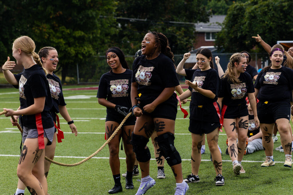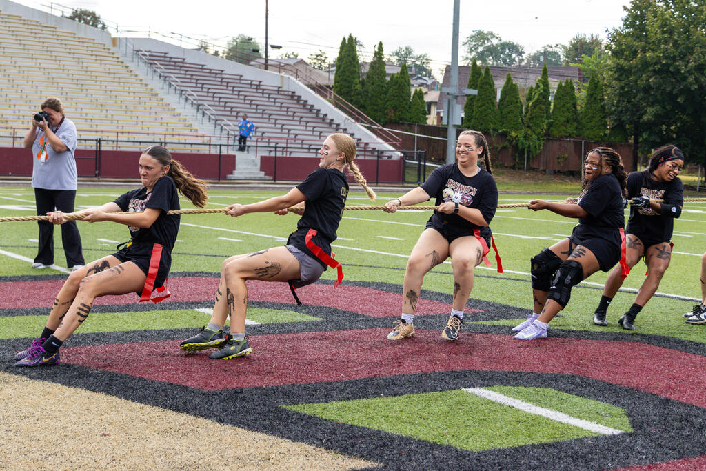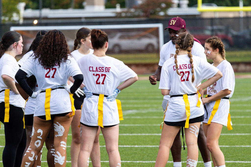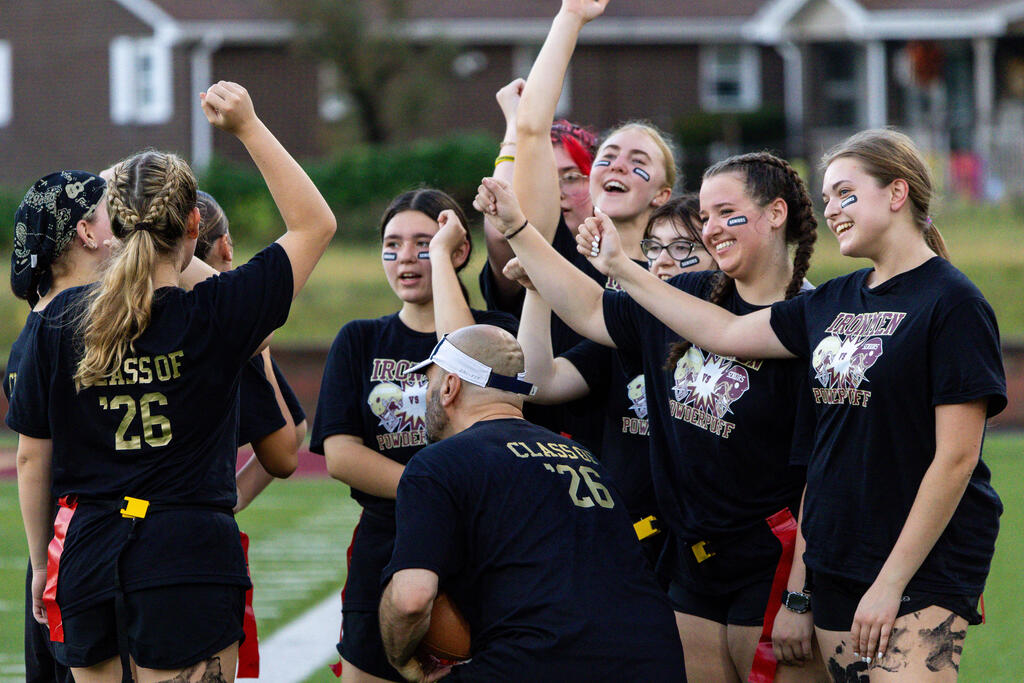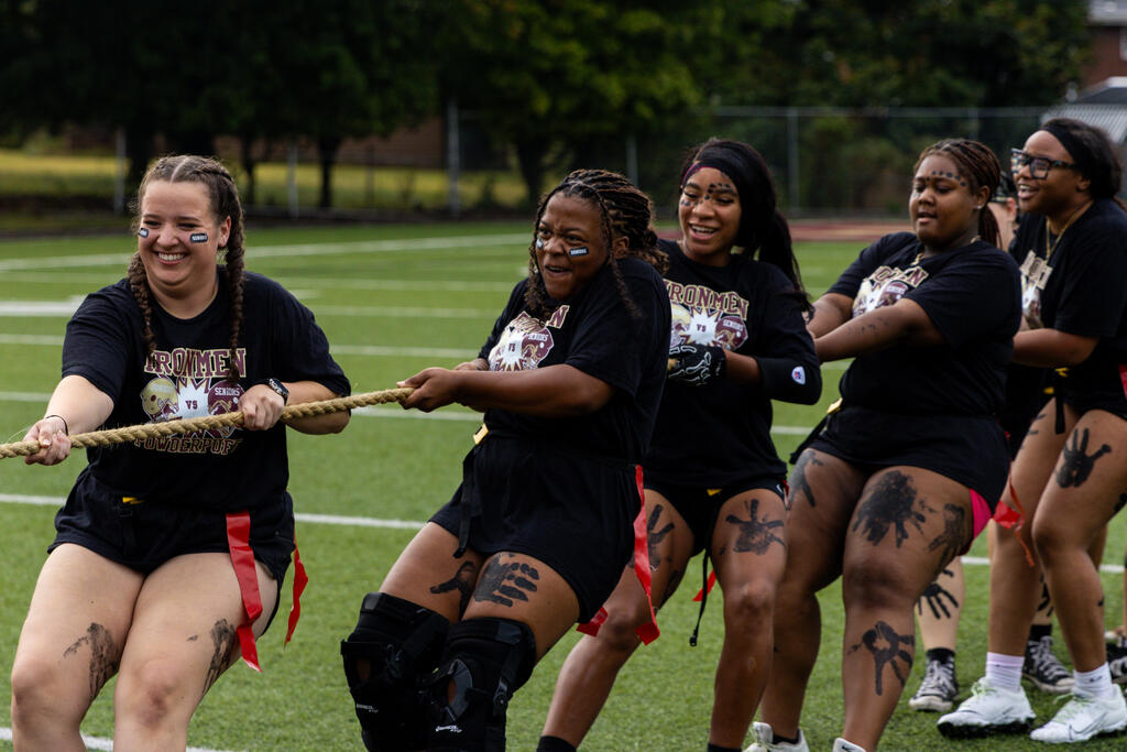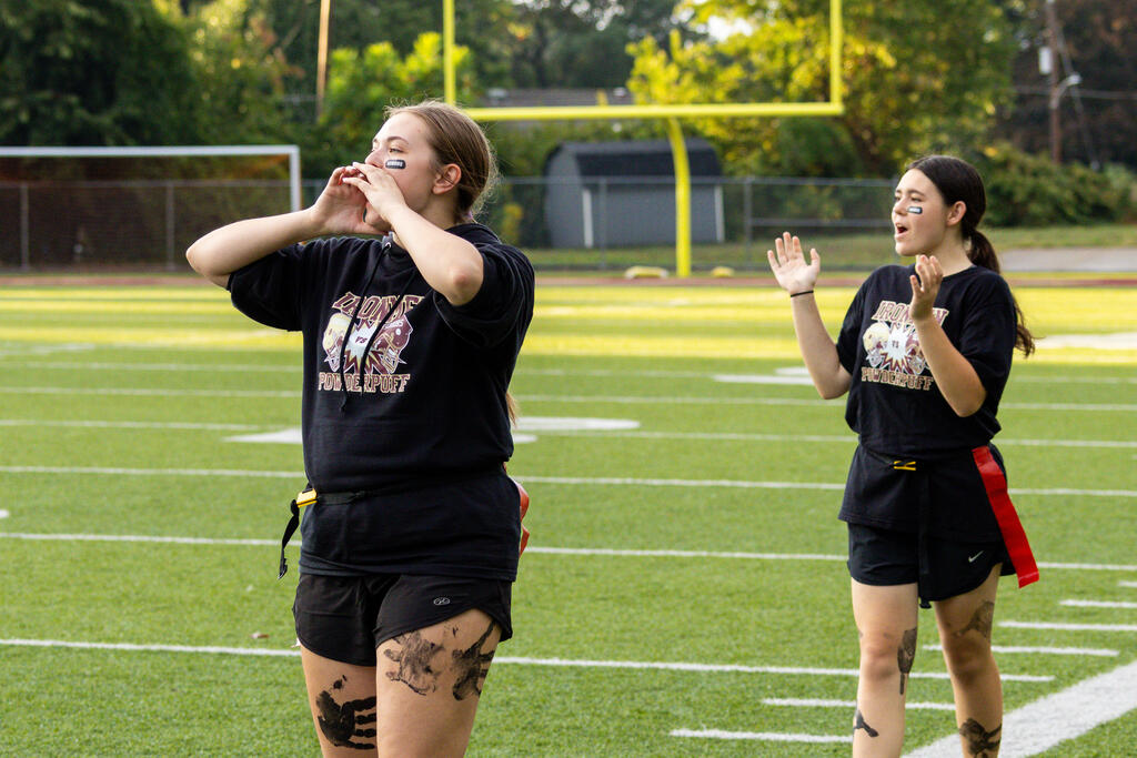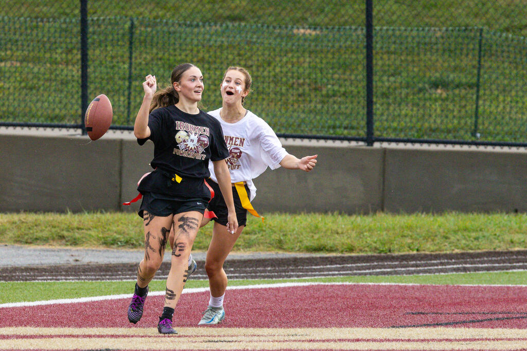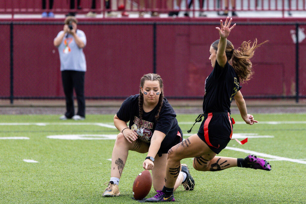 The seniors were determined from the start, winning the annual tug-of-war battle with two consecutive victories in the best of three series. Then, as the skies cleared and the game got underway, the seniors took back the opening kickoff for a touchdown en route to a 22-0 halftime lead.