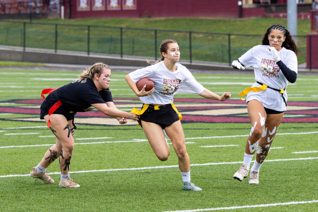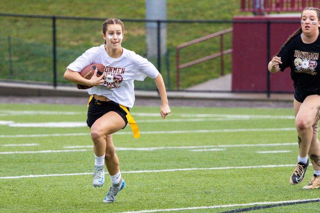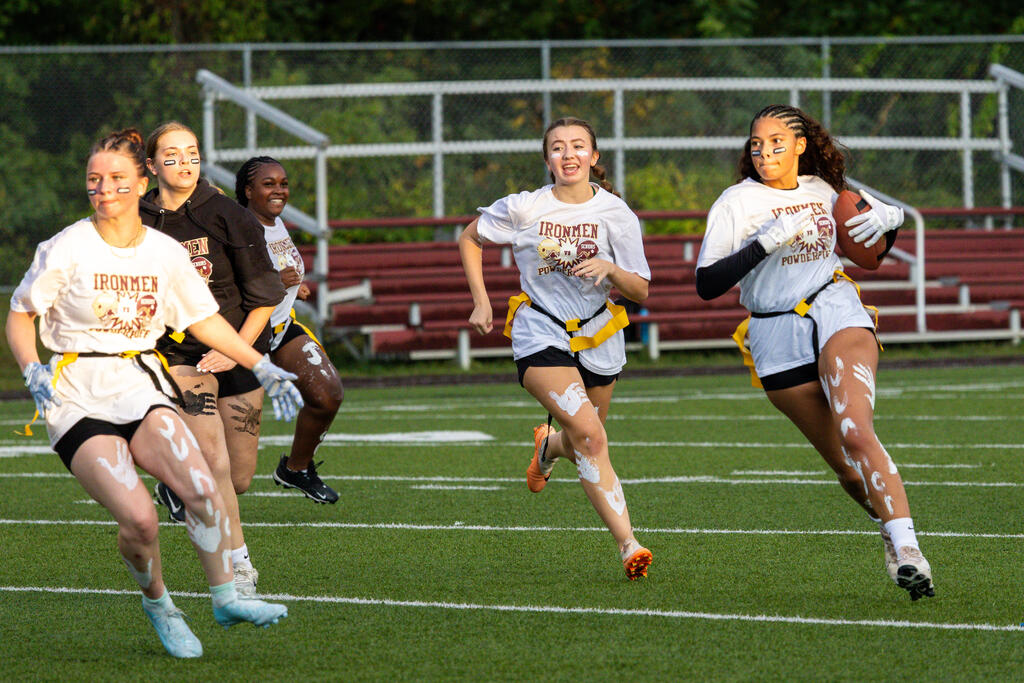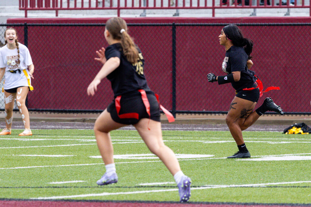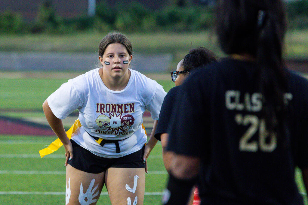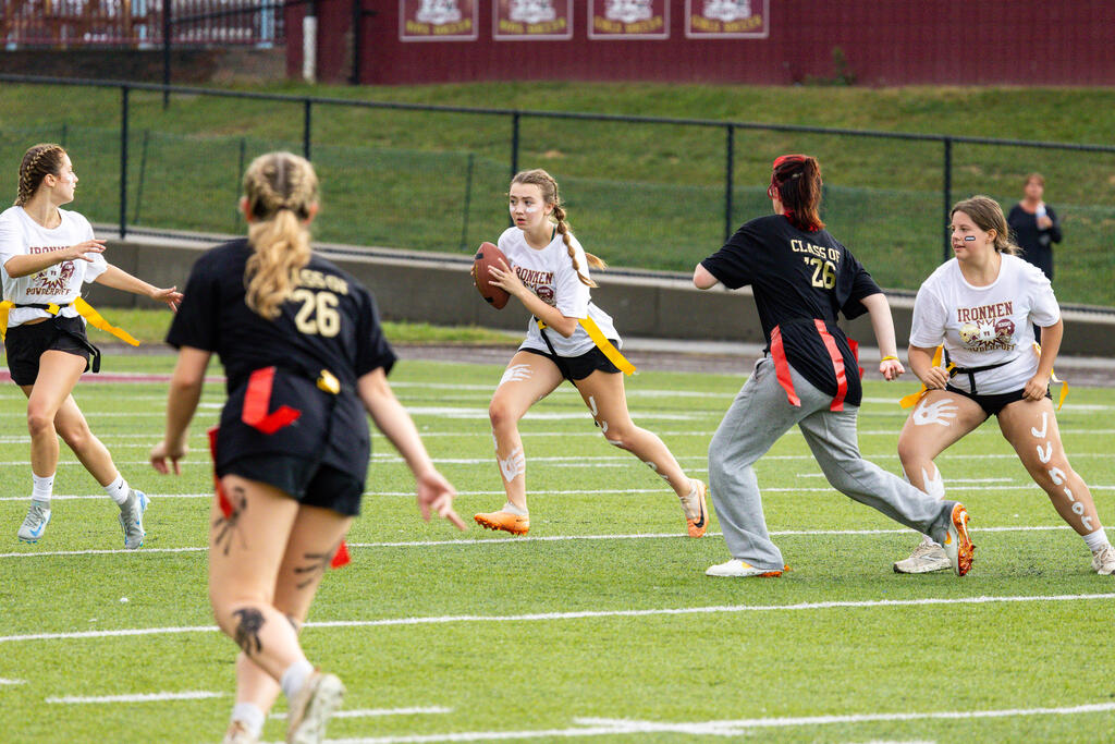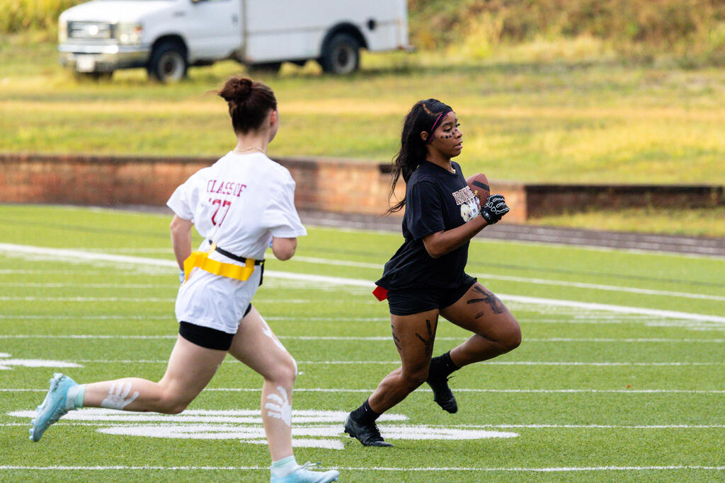 The senior girls raced out to an early lead and defeated the junior girls 40-14 in the annual Homecoming Powder Puff game at Campbell Field.