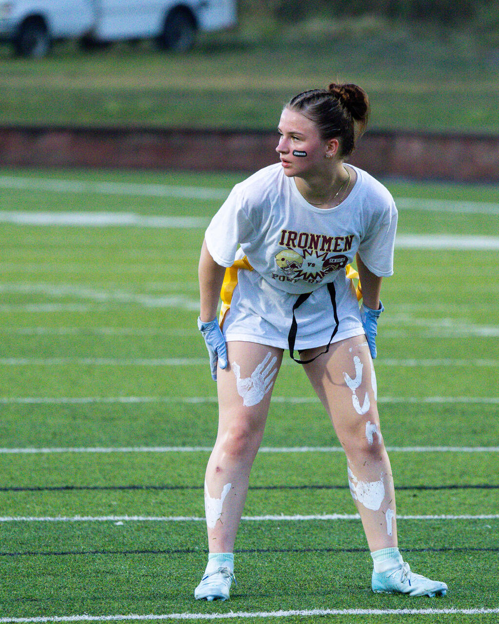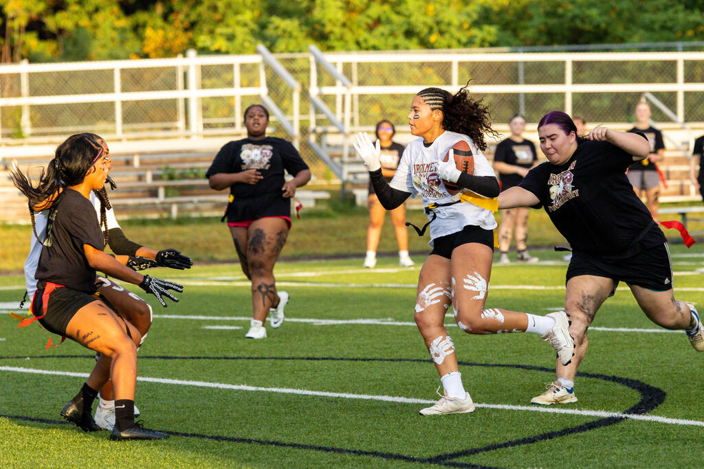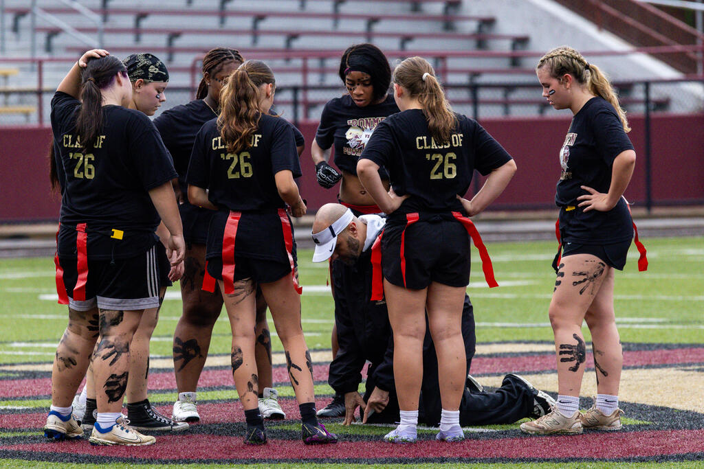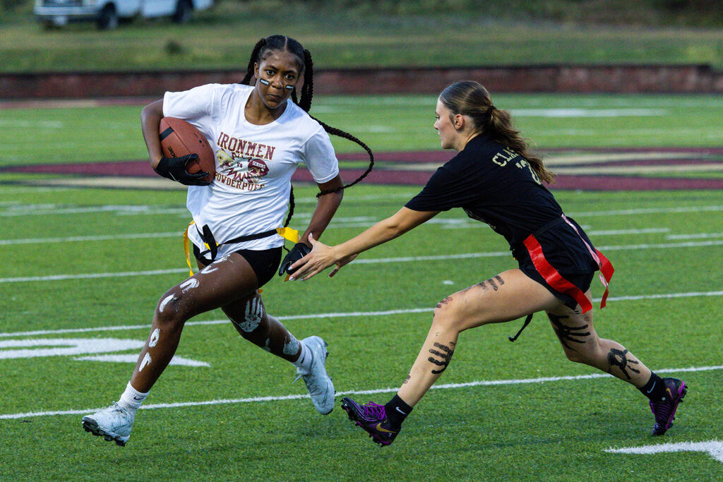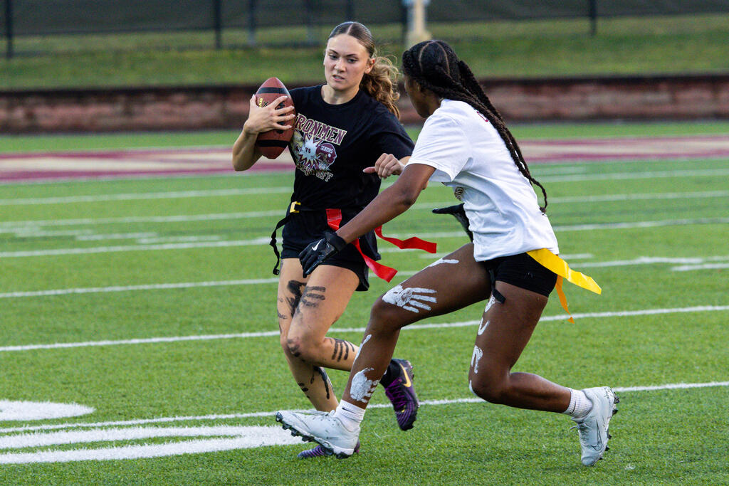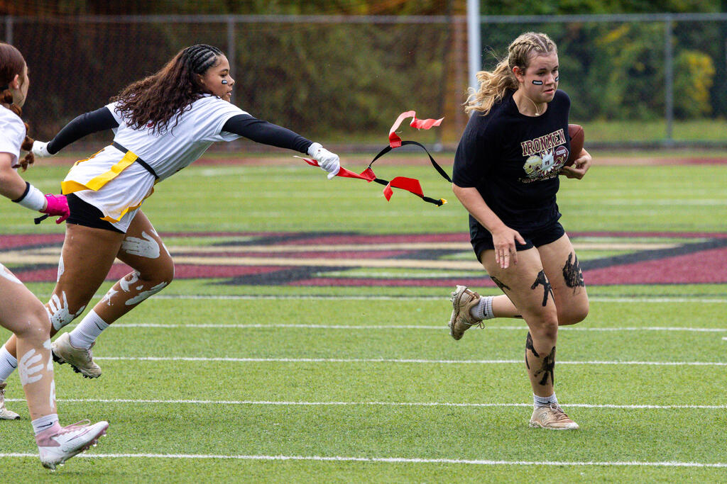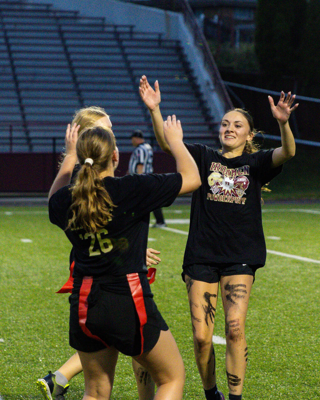 The senior girls raced out to an early lead and defeated the junior girls 40-14 in the annual Homecoming Powder Puff game at Campbell Field.