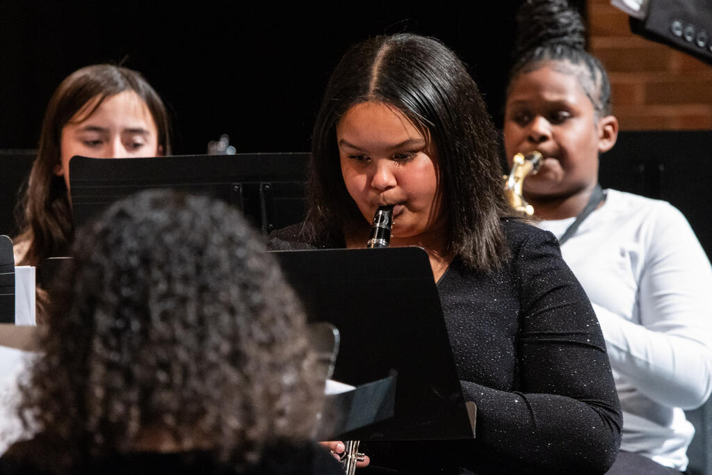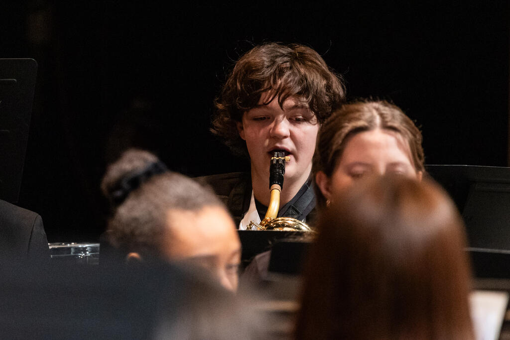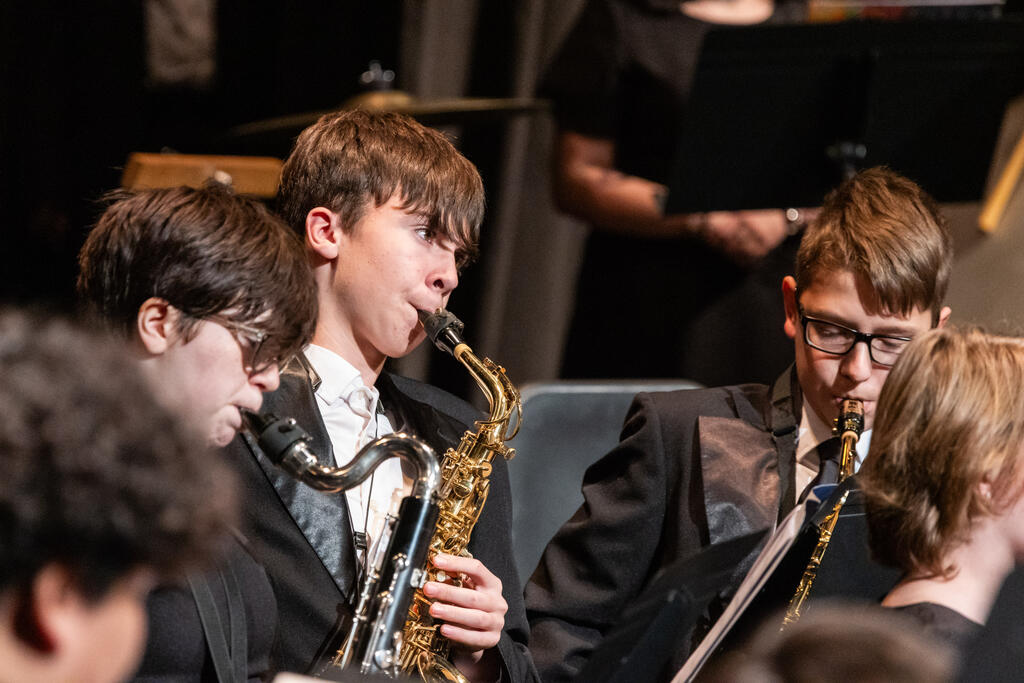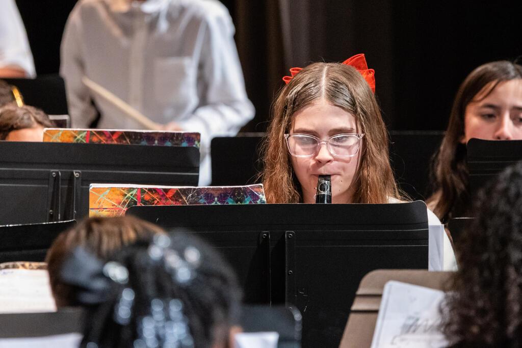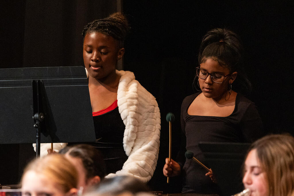 After a brief intermission, the concert bands took the stage under the direction of Mr. Chris Petricca. The fifth and sixth graders showed off their progress with holiday classics "Jingle Bells" and "The Dreidel Song," which the sixth graders followed up with "Irontown Christmas" and "Blizzard's Fury."