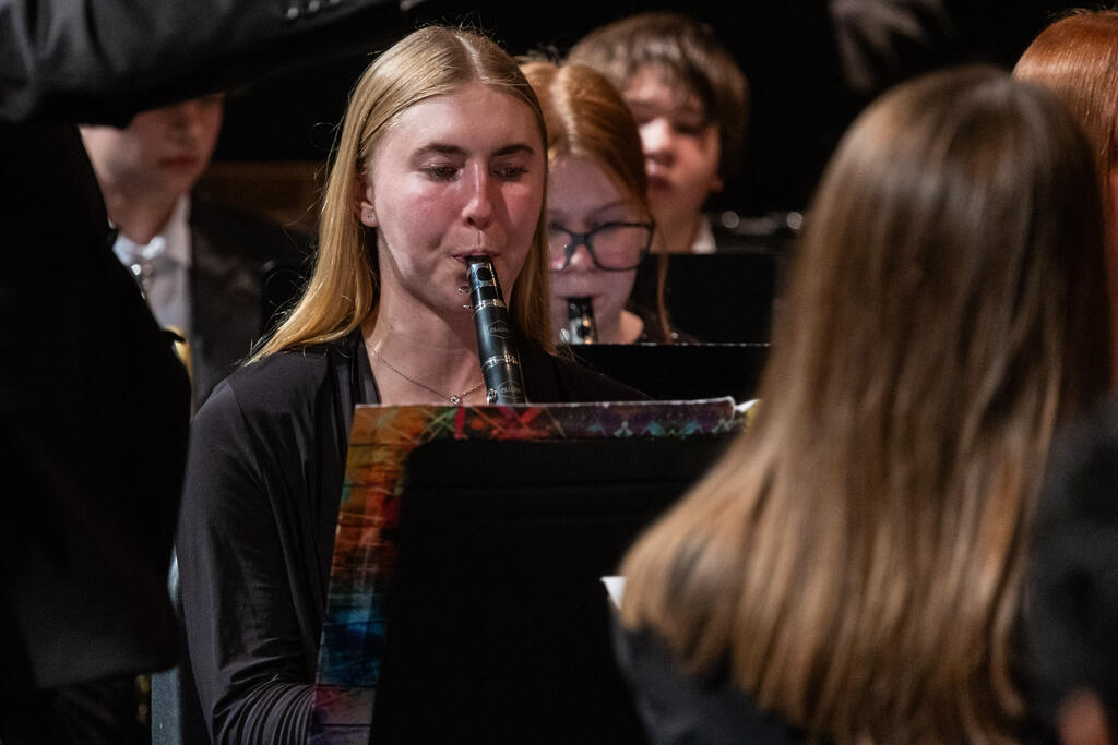 The high school band played a rendition of Megan Vinther's "Snow on Snow" before being joined by the eighth graders for "Let It Snow."