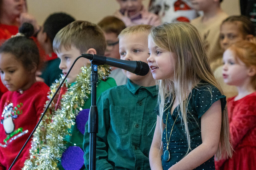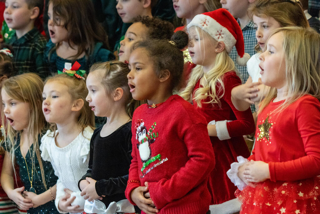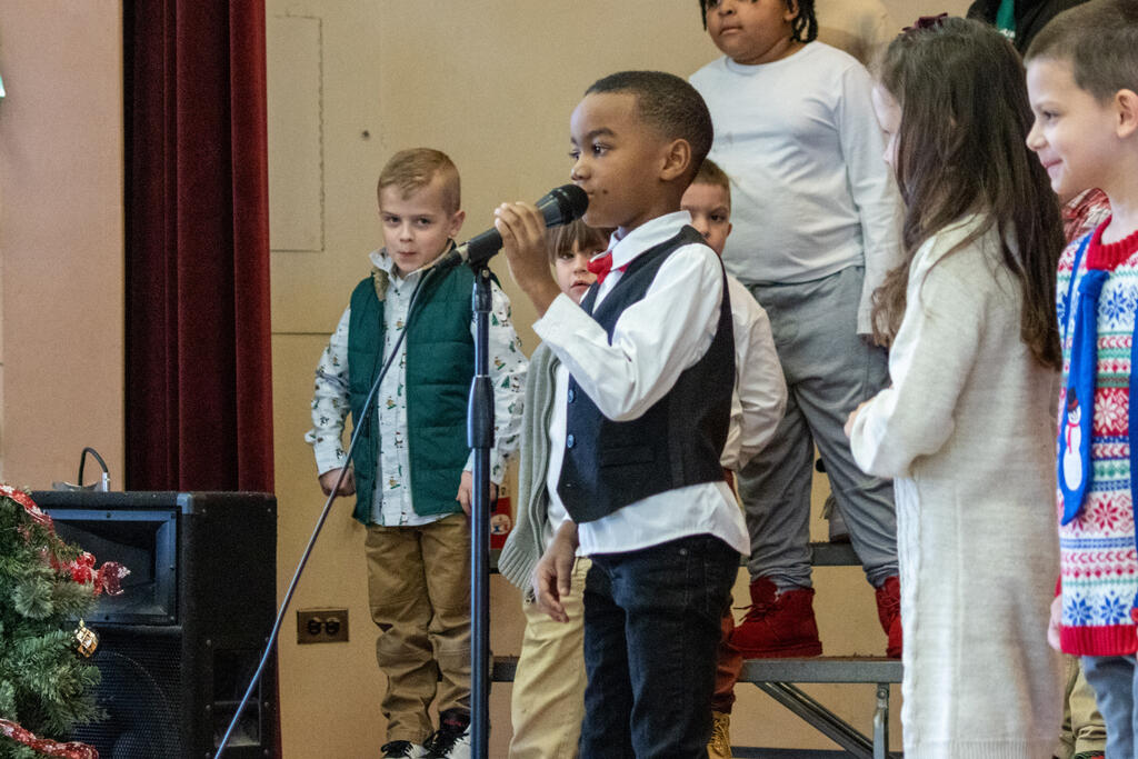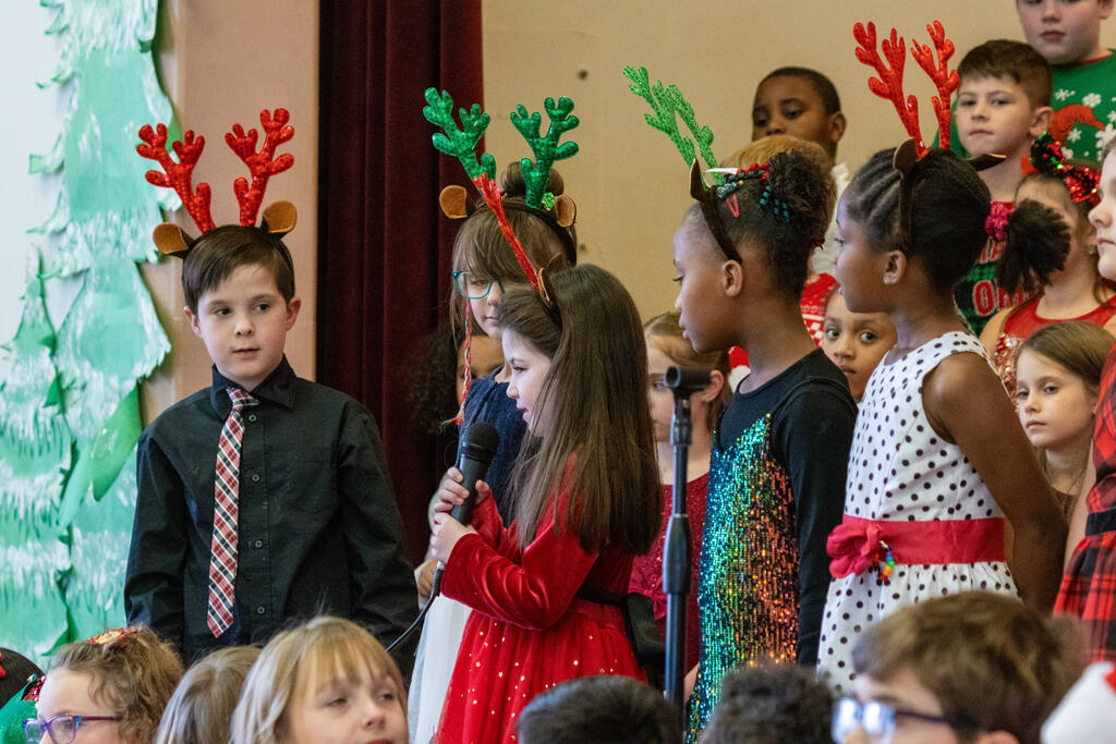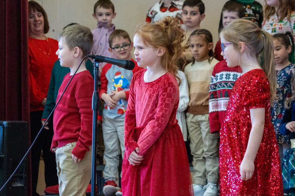 The kindergarteners began the show with "Up On the Housetop," "The Tree Looks Nice," "Dancing Christmas Tree," and "We Wish You A Merry Christmas." Two Park students even brought a pair of Christmas trees to life with a little help from their decorating friends.