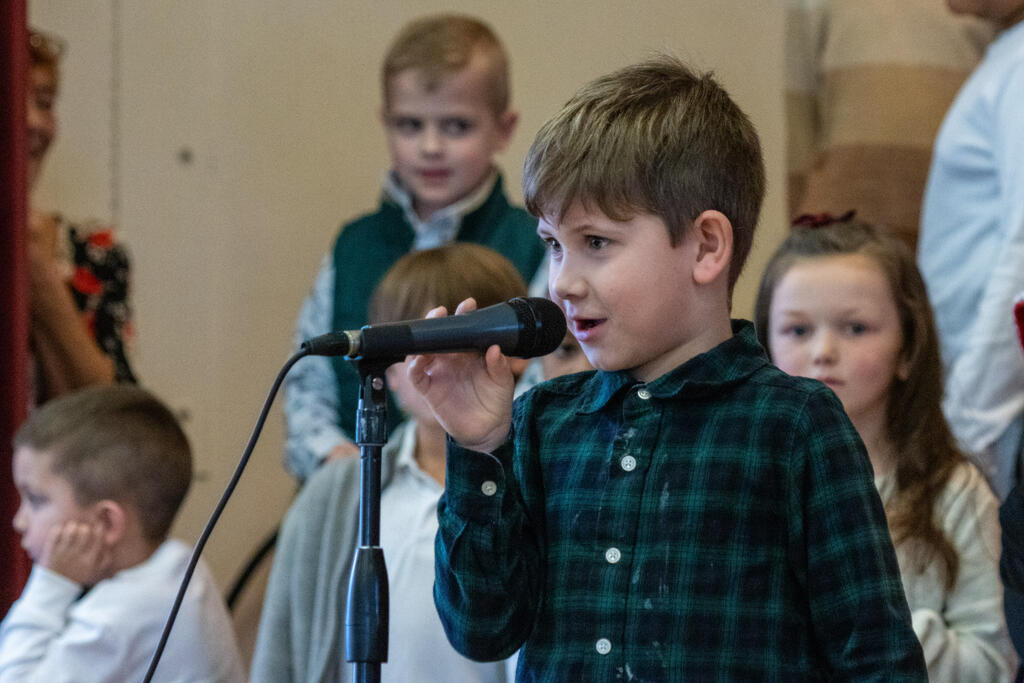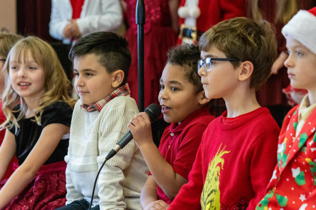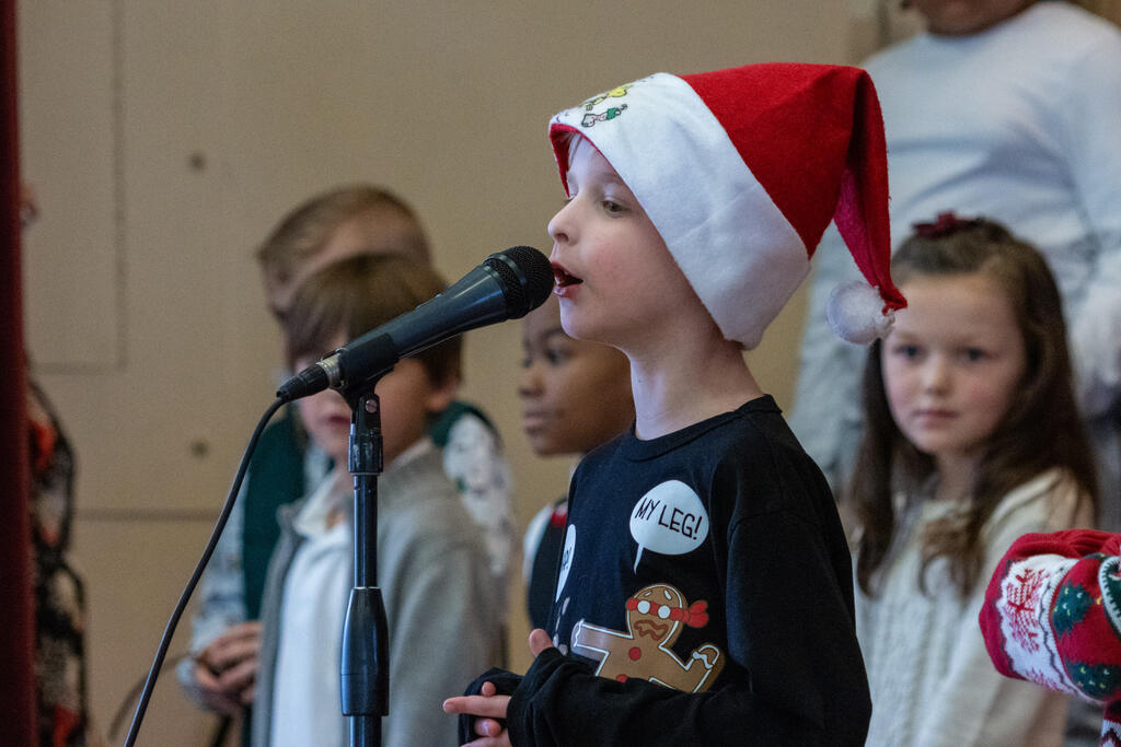Second grade took the stage to sing "Oh, Christmas Tree," "Suzy Snowflake," and "Rudolph the Red-Nosed Reindeer." All of Santa's reindeer made it to the show, including a very energetic Rudolph.