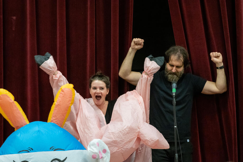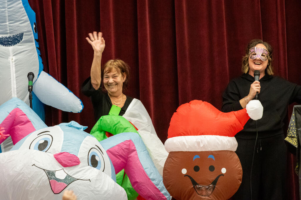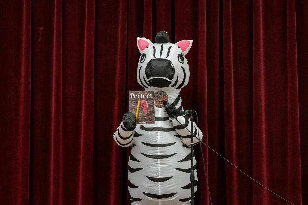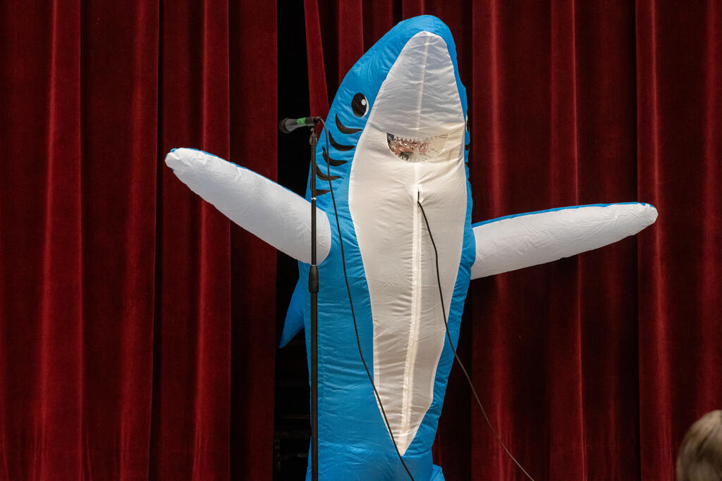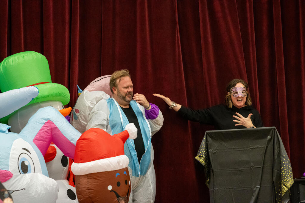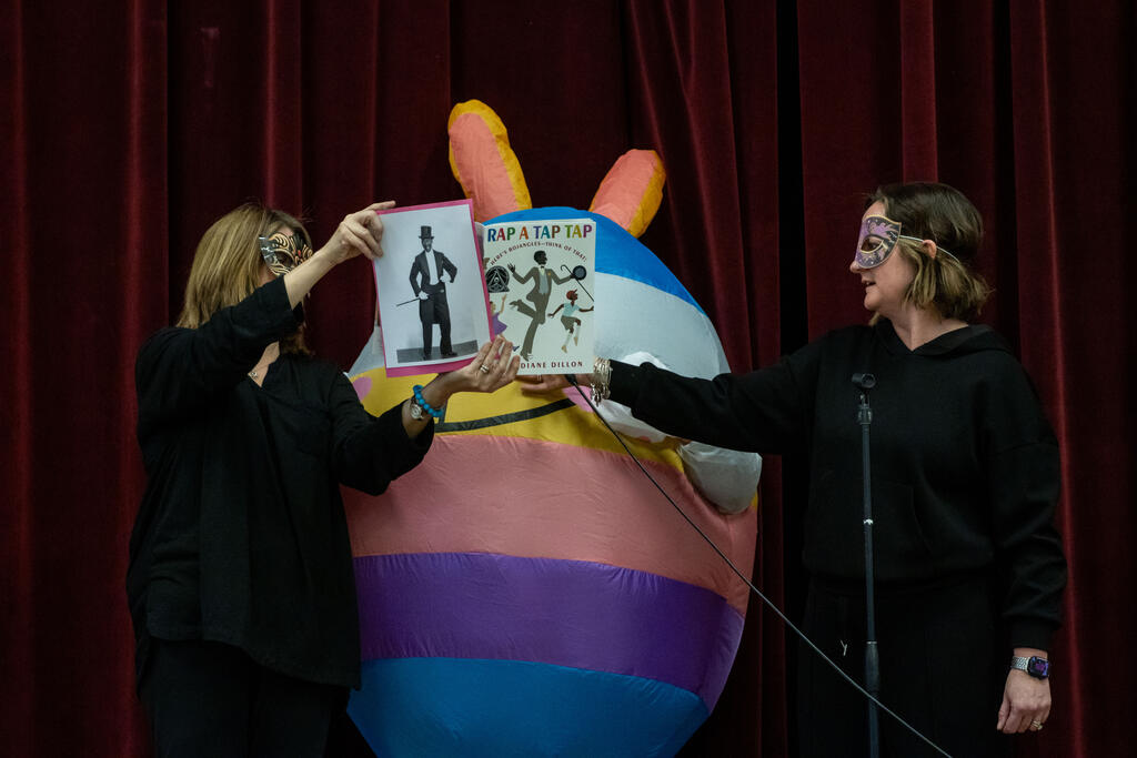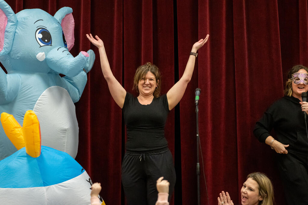 Each of the special guests had appeared in front of the students and families to either read or share details about one of their favorite books. The guests were hidden away inside puffy, inflatable costumes, and the only clues the students and families had to make their guesses were the voices of the readers along with some clues shared by Ms. Strom.