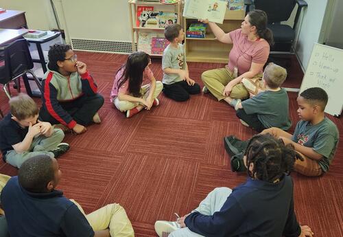 Mrs. Strom, one of our reading specialists, visited all of the kindergarten classe...