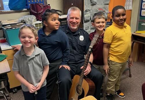 Today Sergeant Tichon, our School Resource Officer, visited Mrs. O.'s support class...